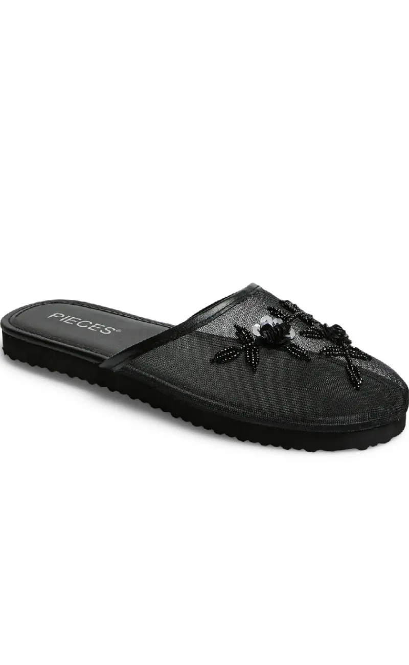 Luftige sandaler fra Pieces i sort, fremstillet i en mesh kvalitet ved snuden.