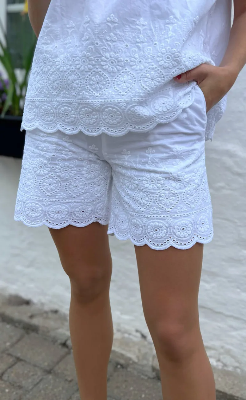 Flotte shorts fra INA Copenhagen i hvid med broderi anglaise detalje nederest.