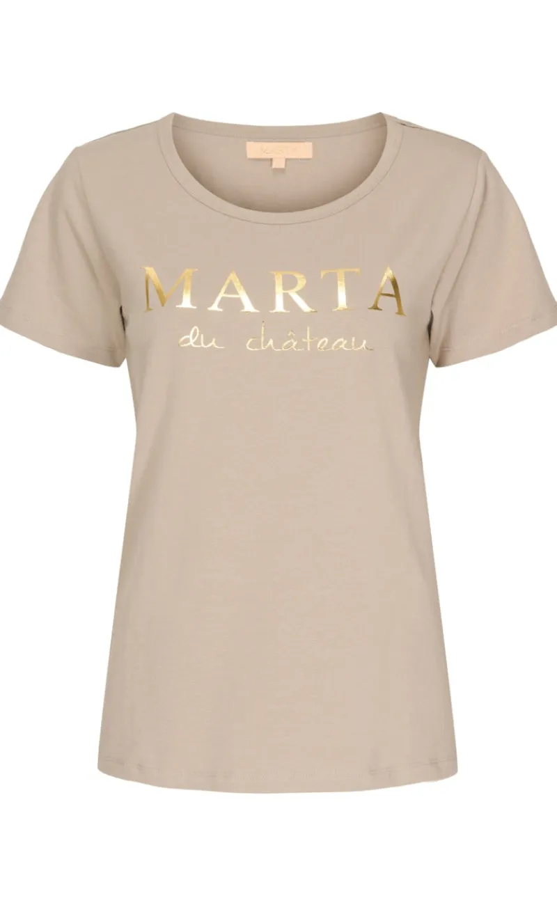Sød t-shirt fra Marta Du Chateau i beige, med guld skrift på brystet.