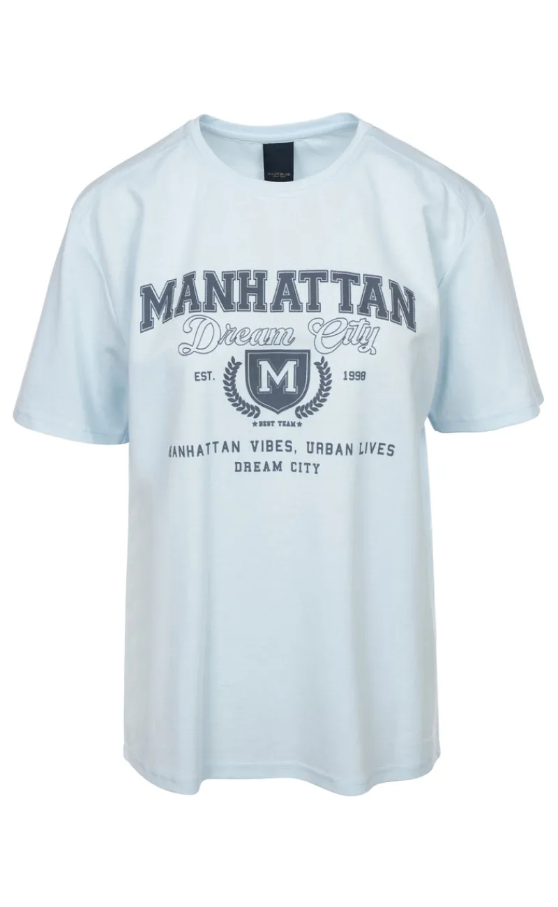 T-shirt fra Luxzuz i lyseblå med et fint print fortil.