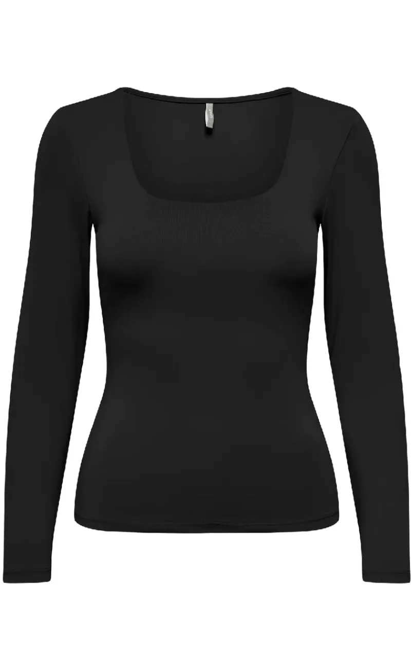 Basic, langærmet bluse fra ONLY i sort fremstillet i et strækbart materiale.