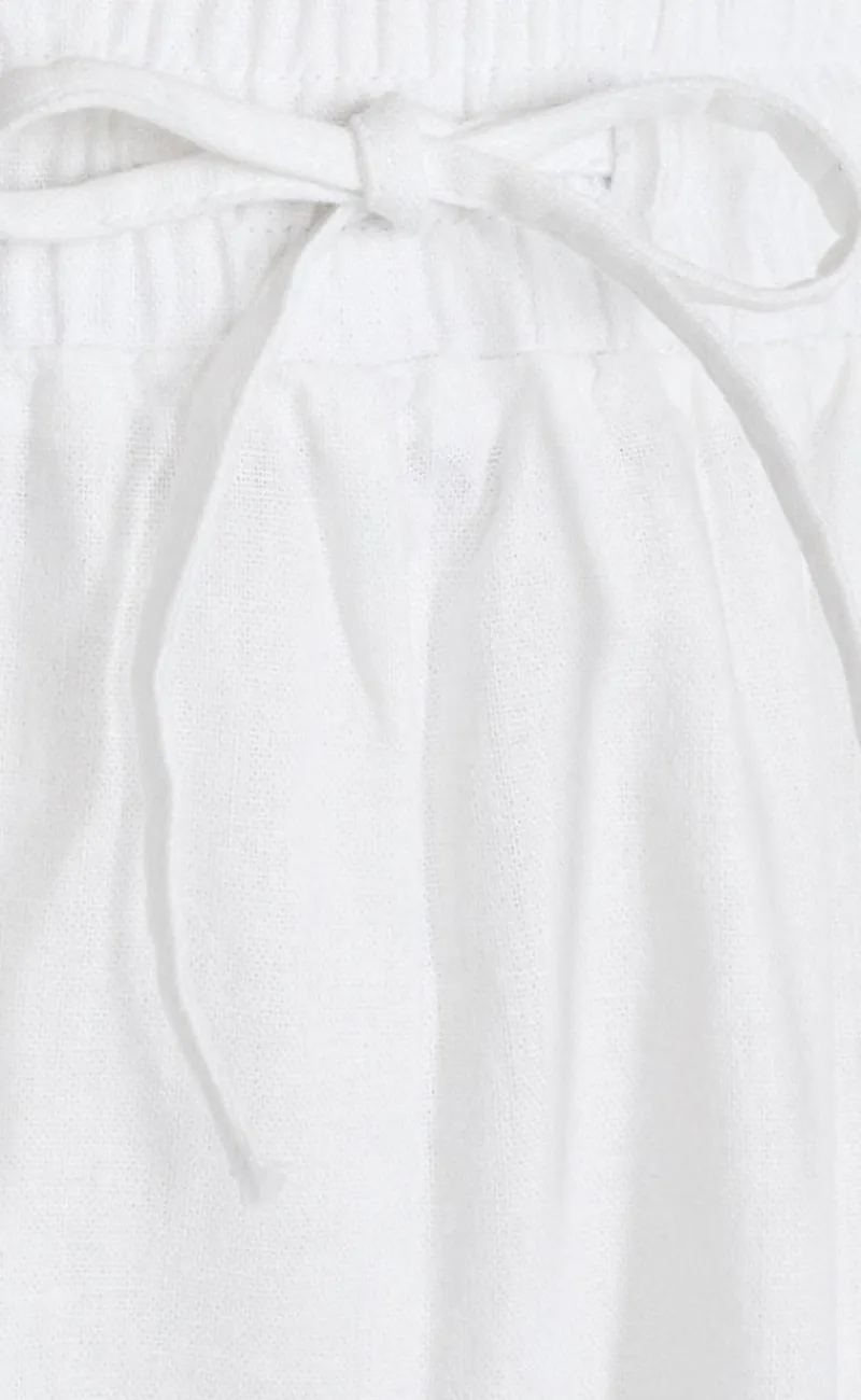 Bukserne er i hørkvalitet og har elastikkant, samt snøre i taljen.