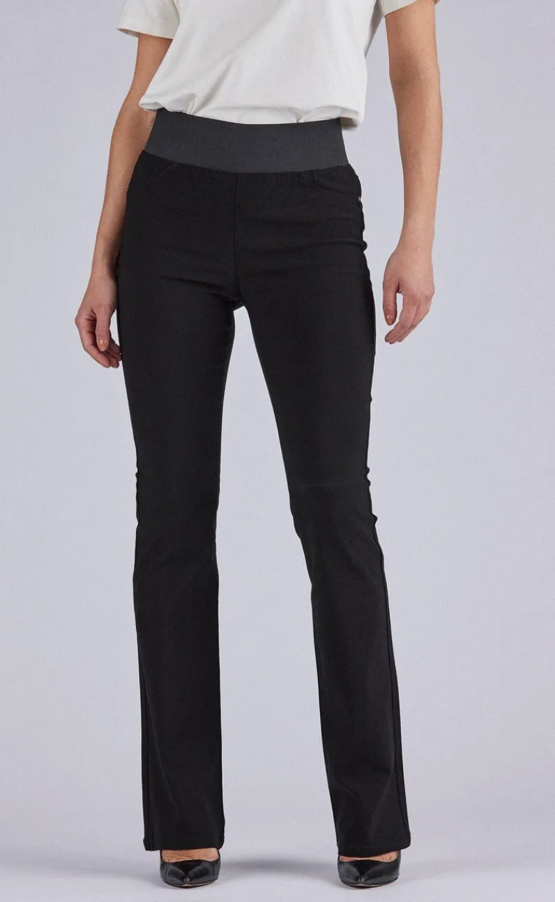 Skønne bukser fra Freequent i sort med let vidde i buksebenene, som skaber den populære flare-effekt.
