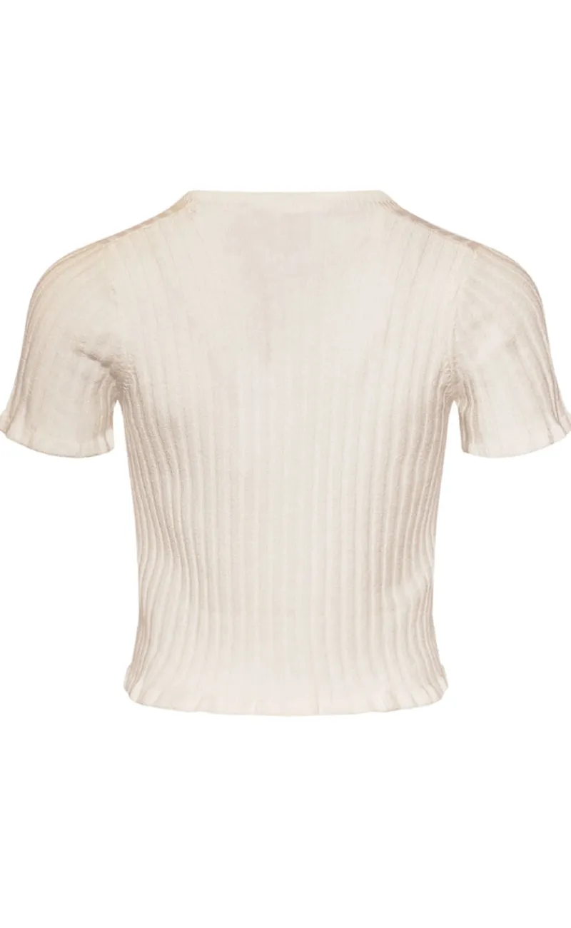 Cardiganen har korte ærmer, en fin lille flæsekant og en v-hals.