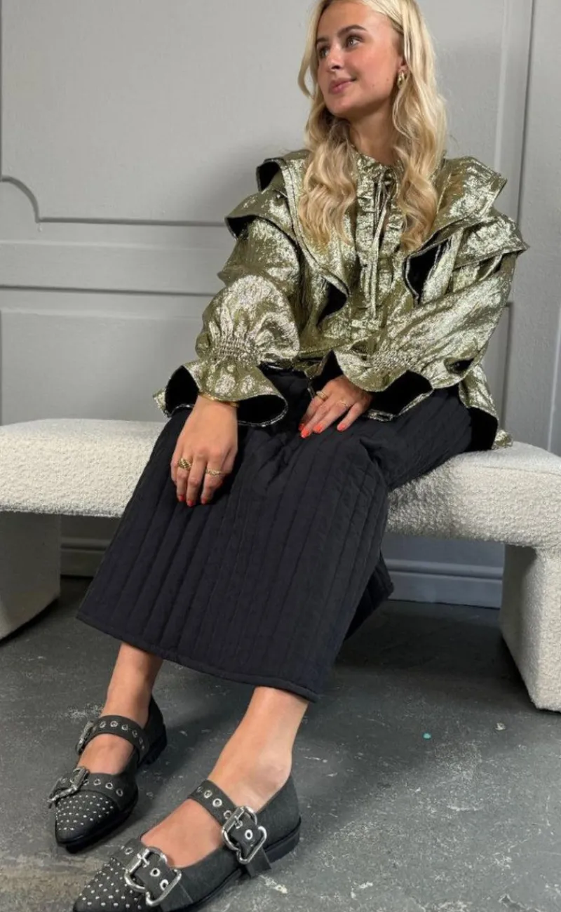 De fineste ballerinaer fra Copenhagen Shoes i sort i en denim kvalitet, med to spænder samt sten.