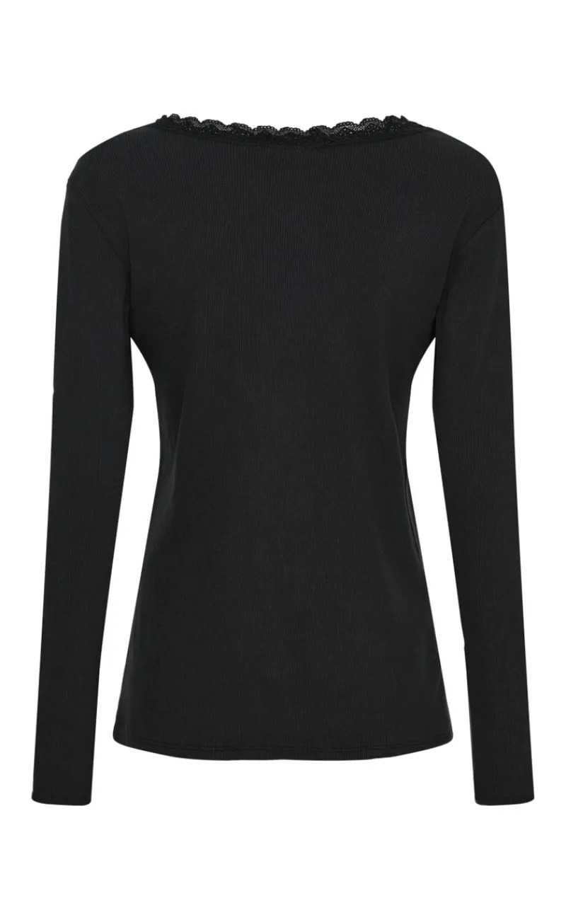 Fin og simpel bluse, med en lille flæse kant i kraven.