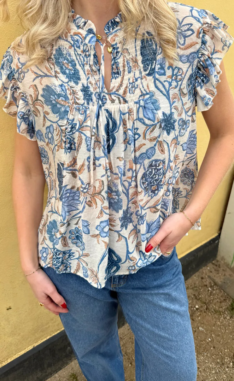 Den sødeste top fra INA Copenhagen med blomsterprint i blå nuancer.