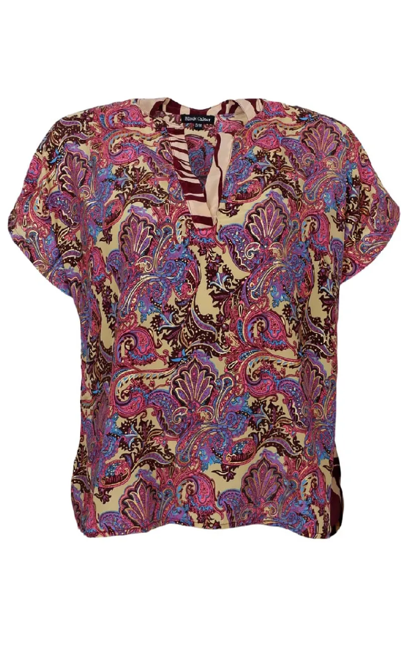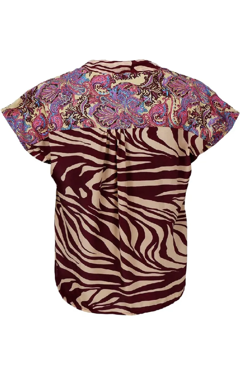 Sød bluse fra Black Colour i et paisleyprint, med zebraprint på ryggen.