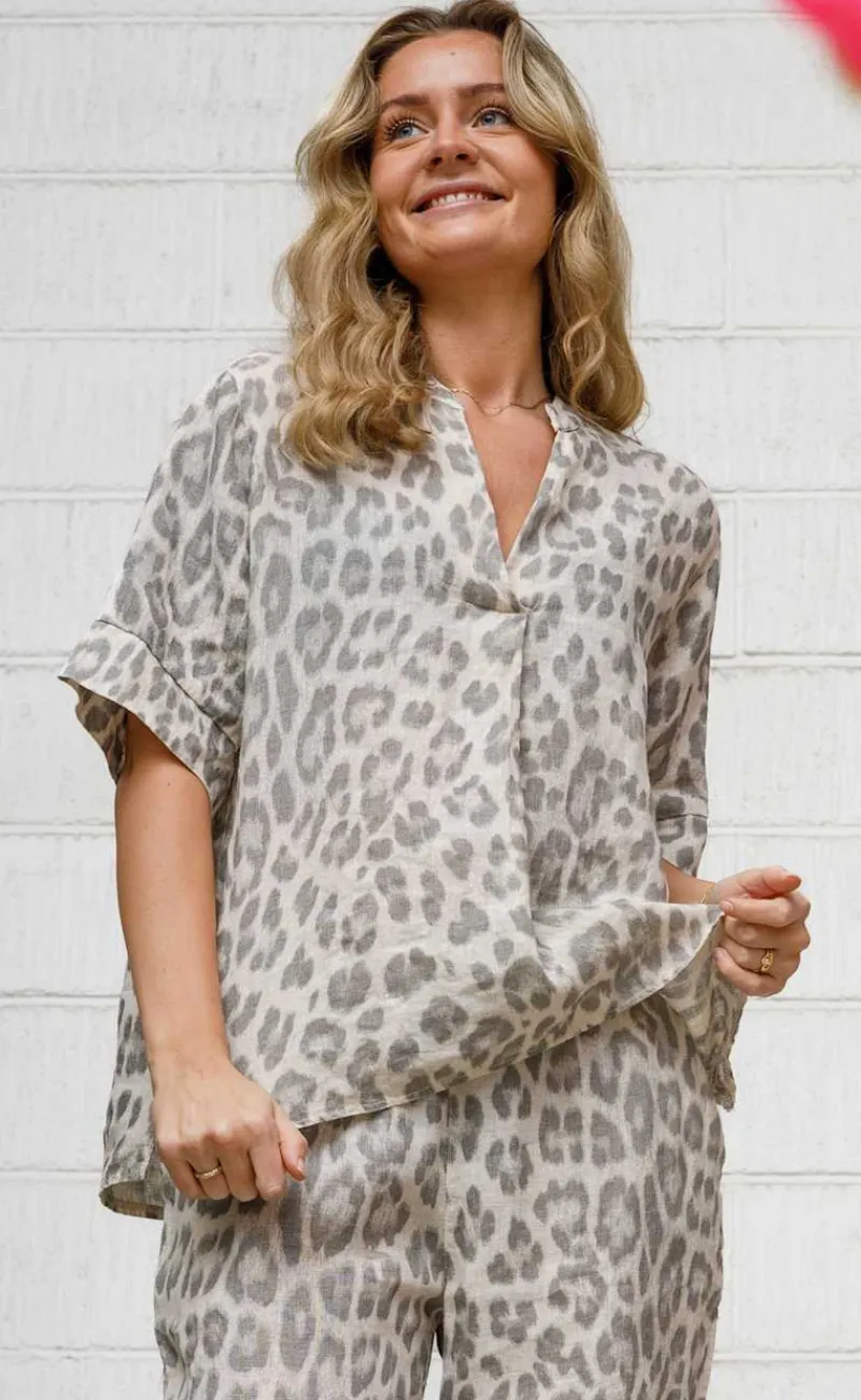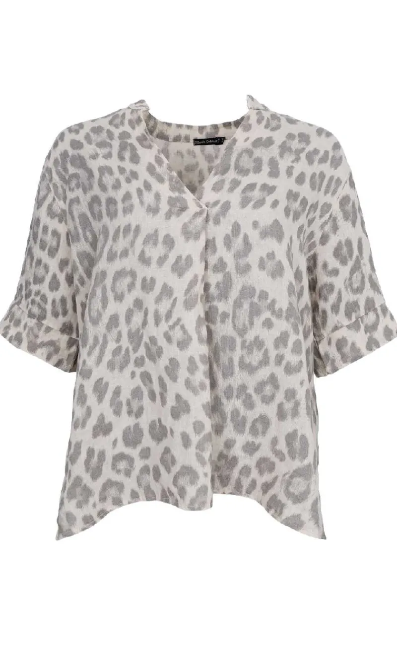 Løs og luftigt bluse fra Black Colour i et lyst leopard print.