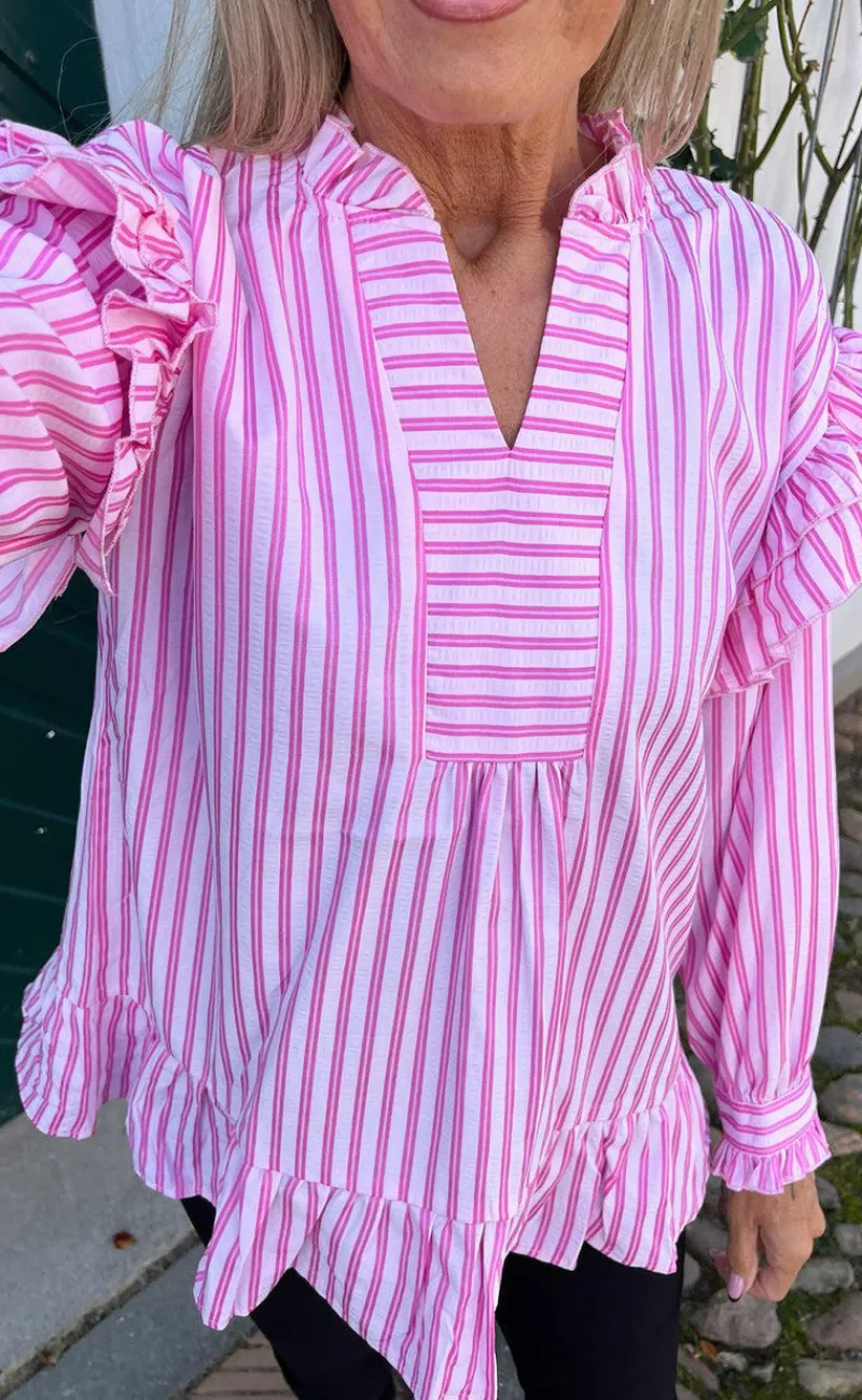 Smuk bluse fra INA Copenhagen med pinke striber.