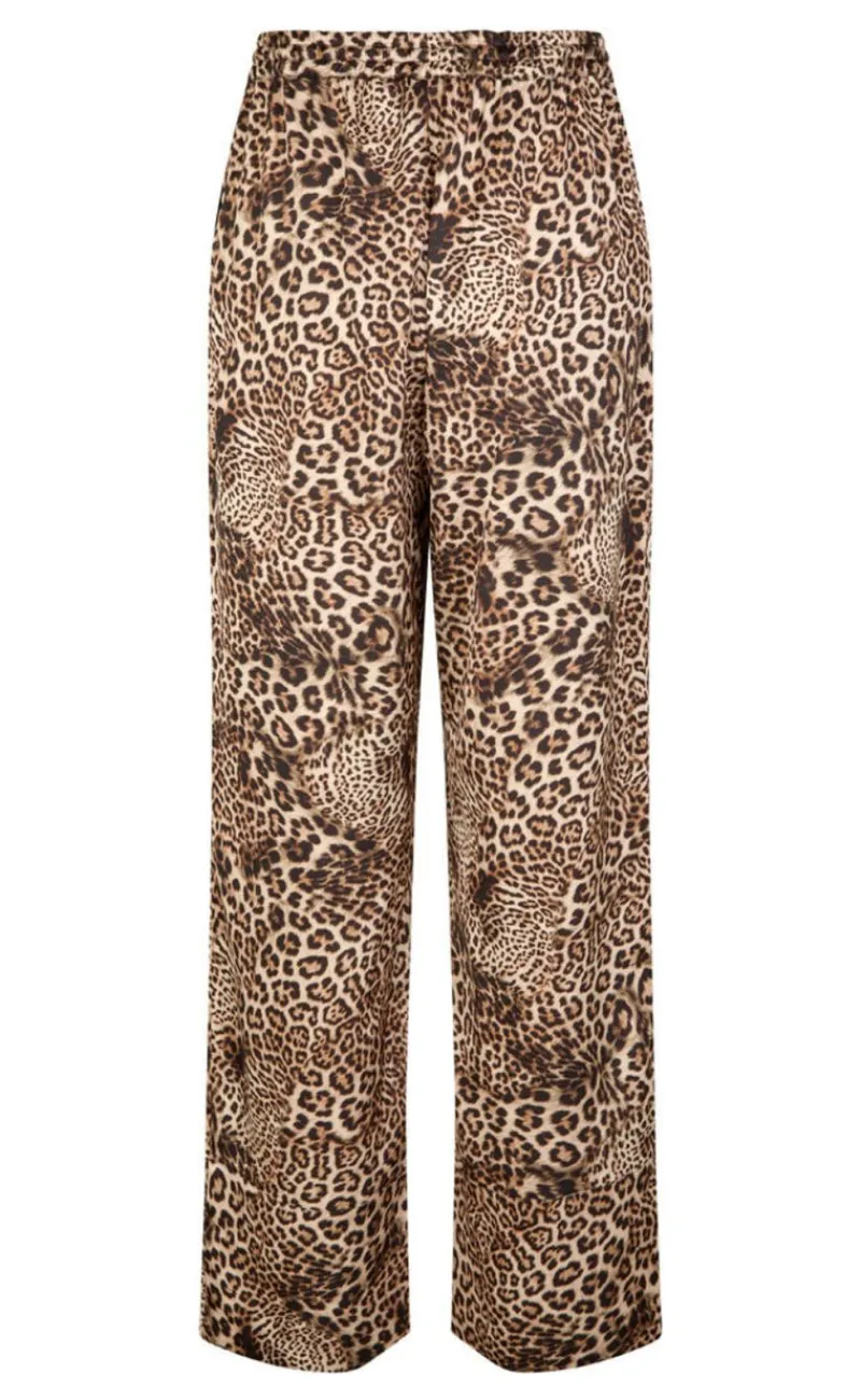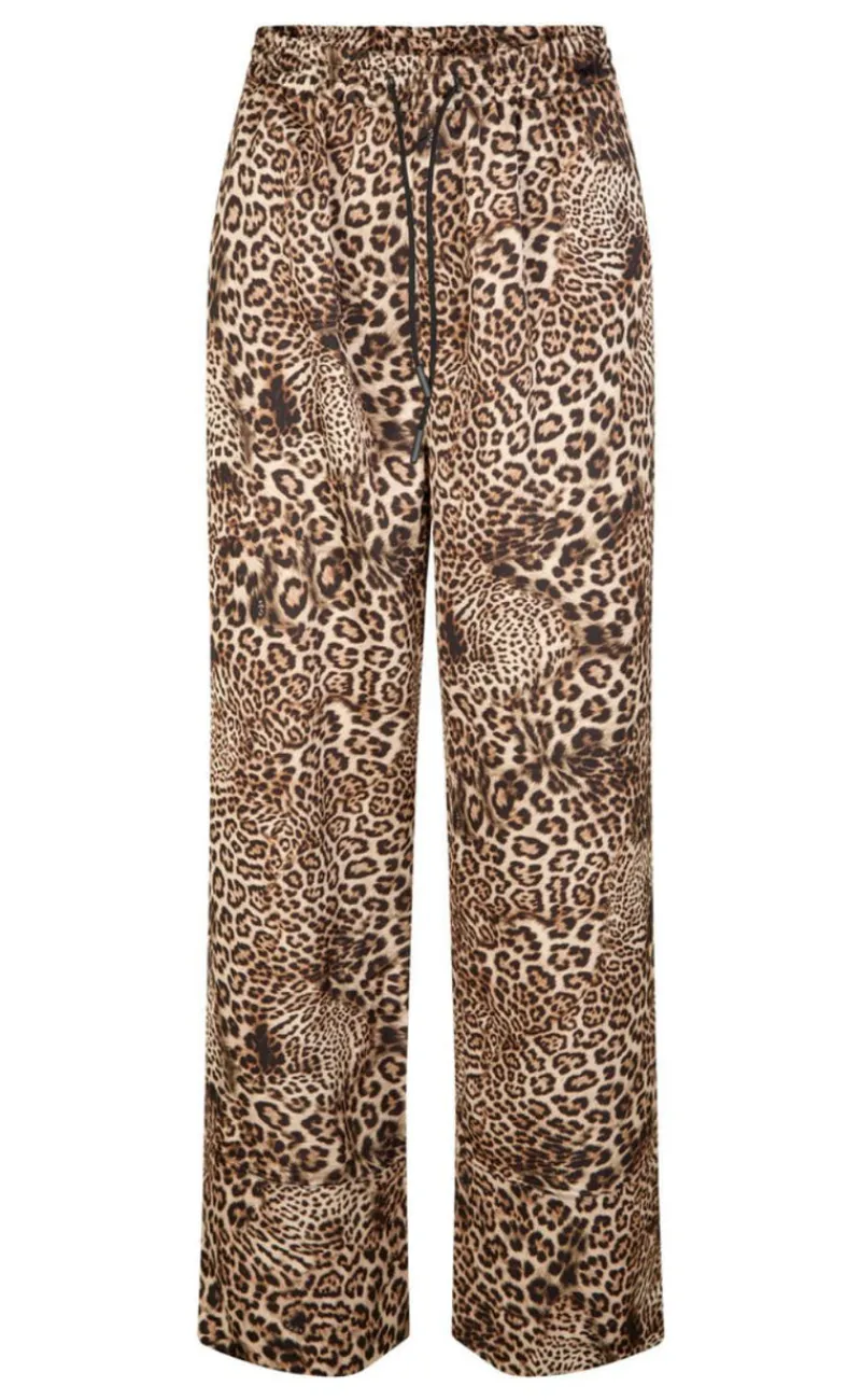 Bløde og stilfulde bukser i dyreprint. Bukserne har en elastisk talje med snore og er perfekte til afslapning derhjemme eller til at skabe et chic look med en skjorte og hæle til en aften ude.