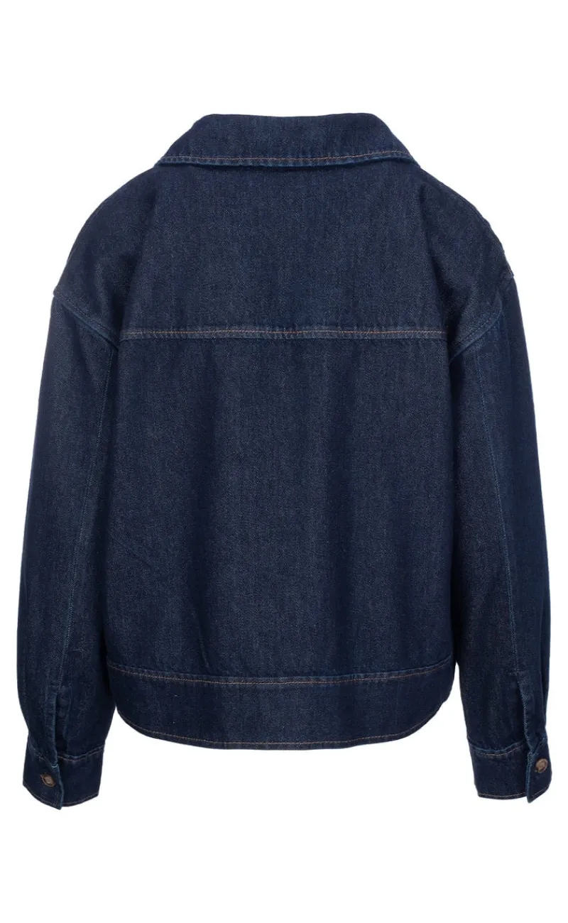 Denim jakke fra Luxzuz i et mørkeblå wash.