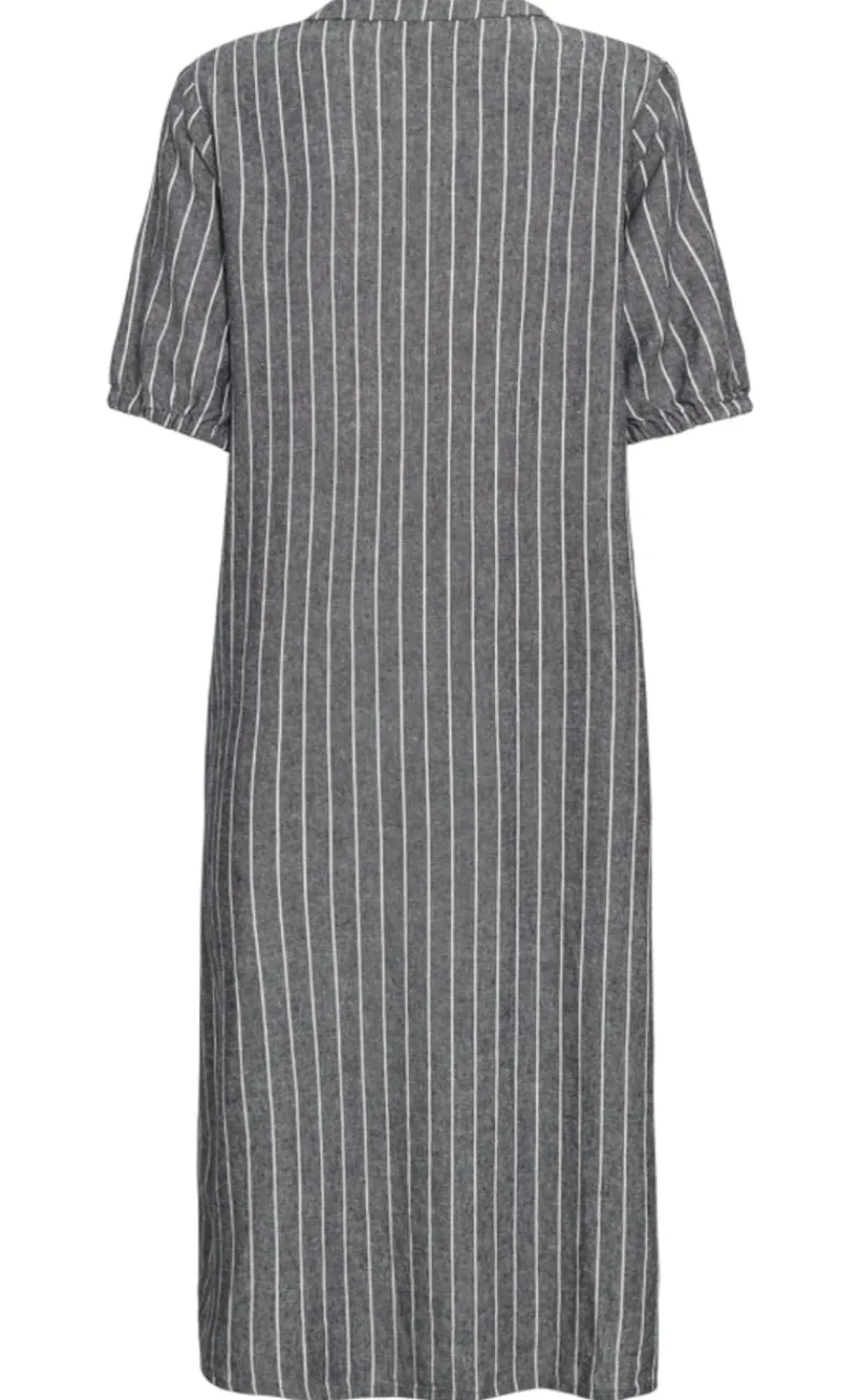 Kjolen har korte ærmer, knapper lang ned og detalje i taljen.