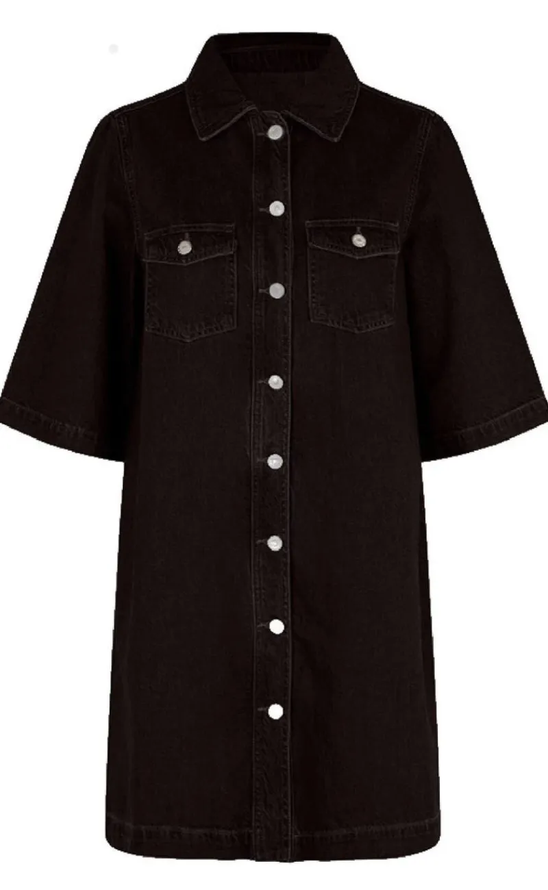 Kjolen har gennemgående knapper, korte ærmer og brystlommer.