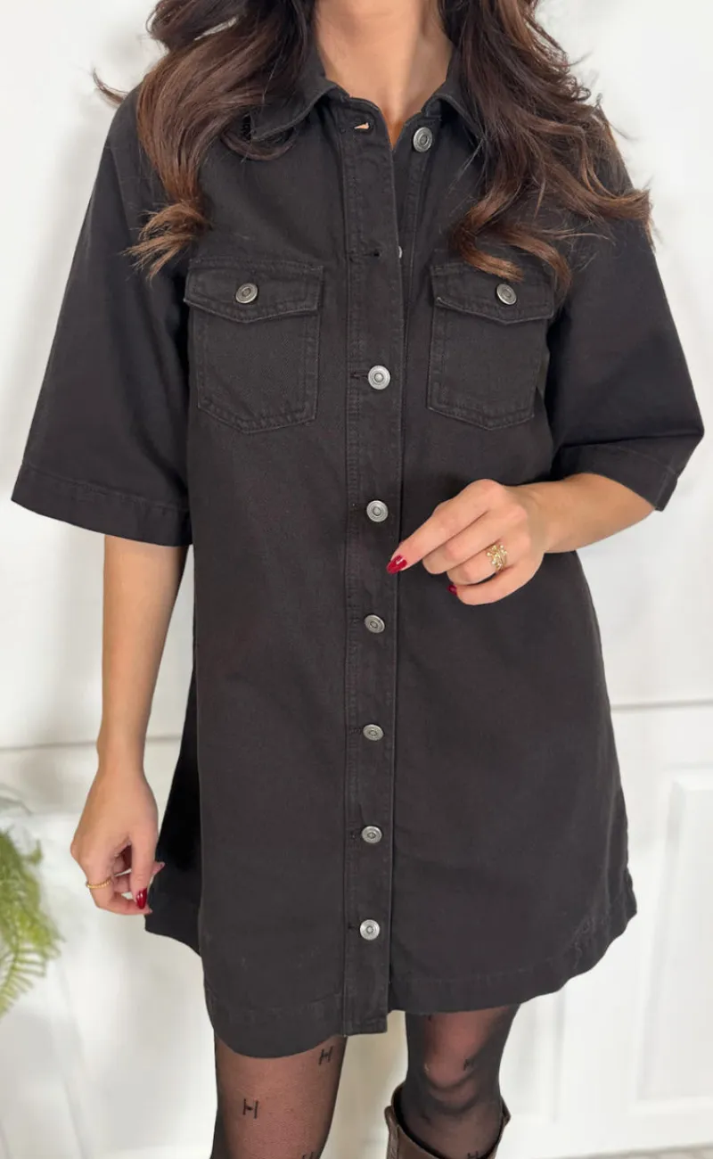 Flot denim kjole fra Global Funk i mørkebrun.
