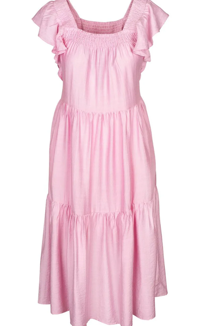 Smuk kjole med flæsedetaljer fra Luxzuz. Lækkert look og praktiske lommer i siderne. Den perfekte kjole til både afslappede og mere festlige anledninger.