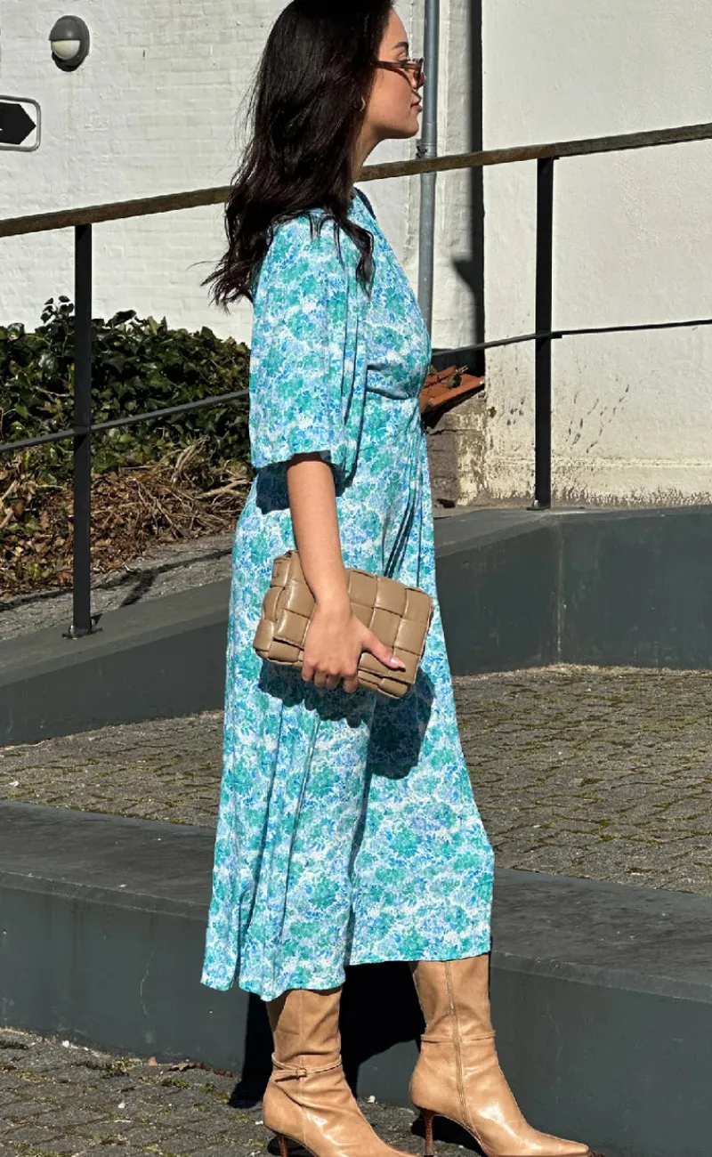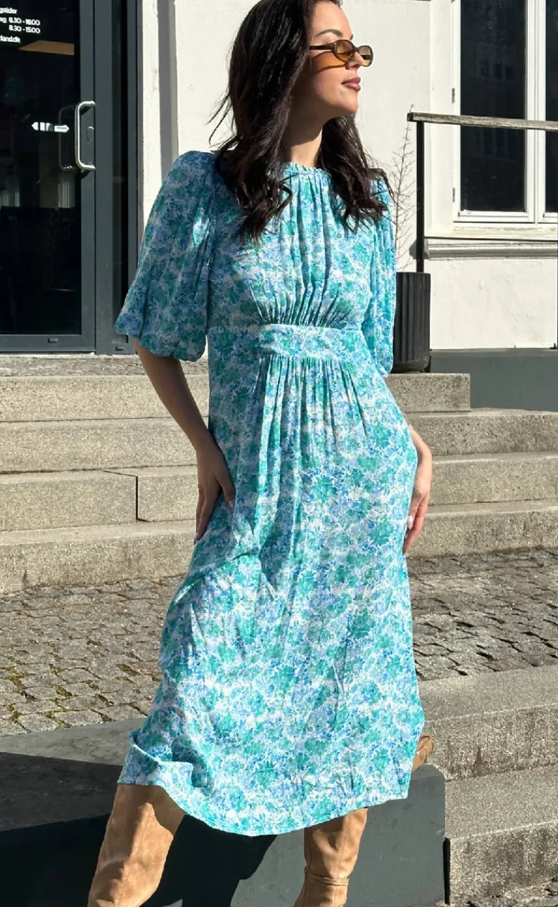 Super yndig kjole fra Noella i et blåt blomsterprint.