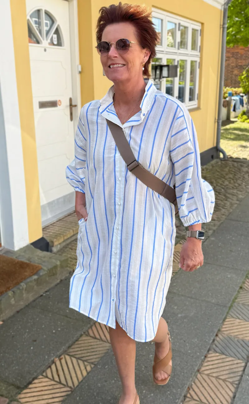 Den yndigste kjole fra INA Copenhagen i et blå og hvid stribet print.