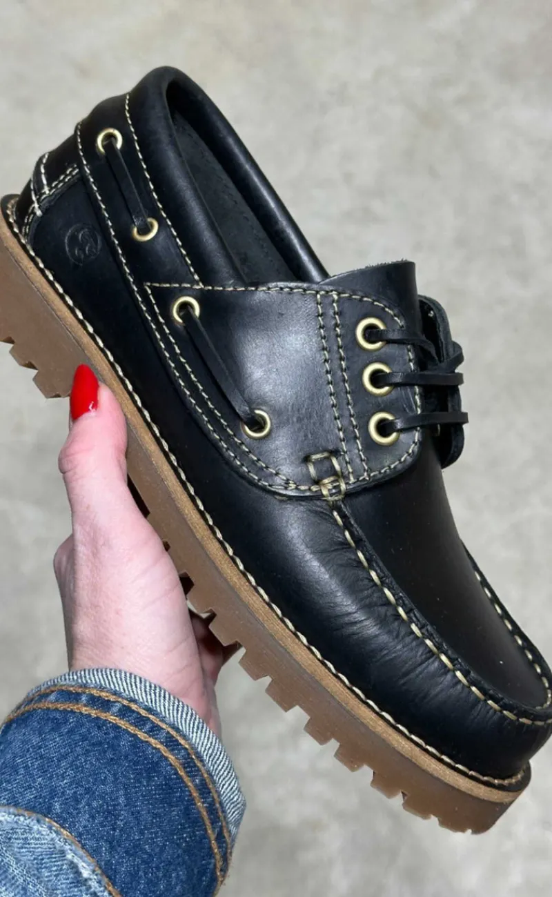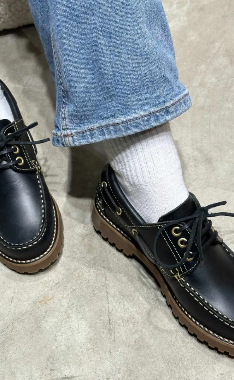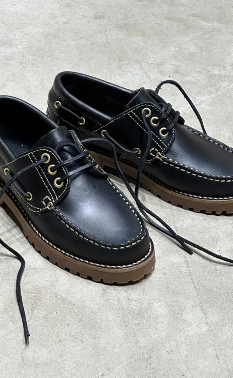 Moderne loafers fra Phenumb i sort, med fede kontrast syninger.
