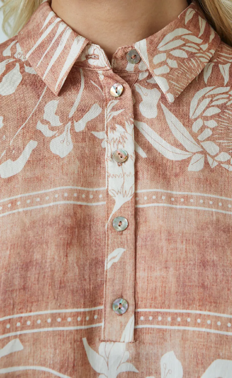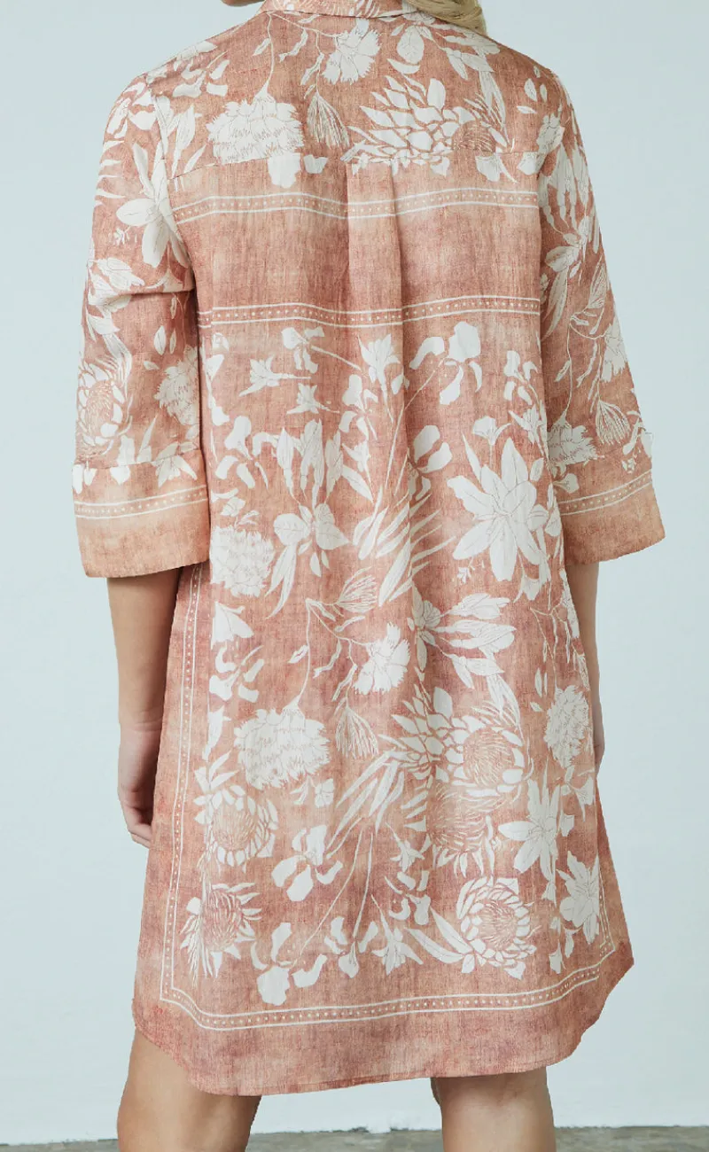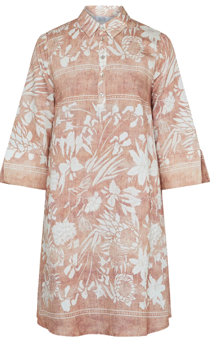 Kjolen har en kort knaplukning og 3/4 lange ærmer.