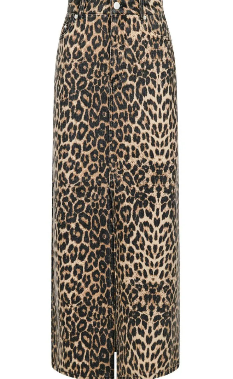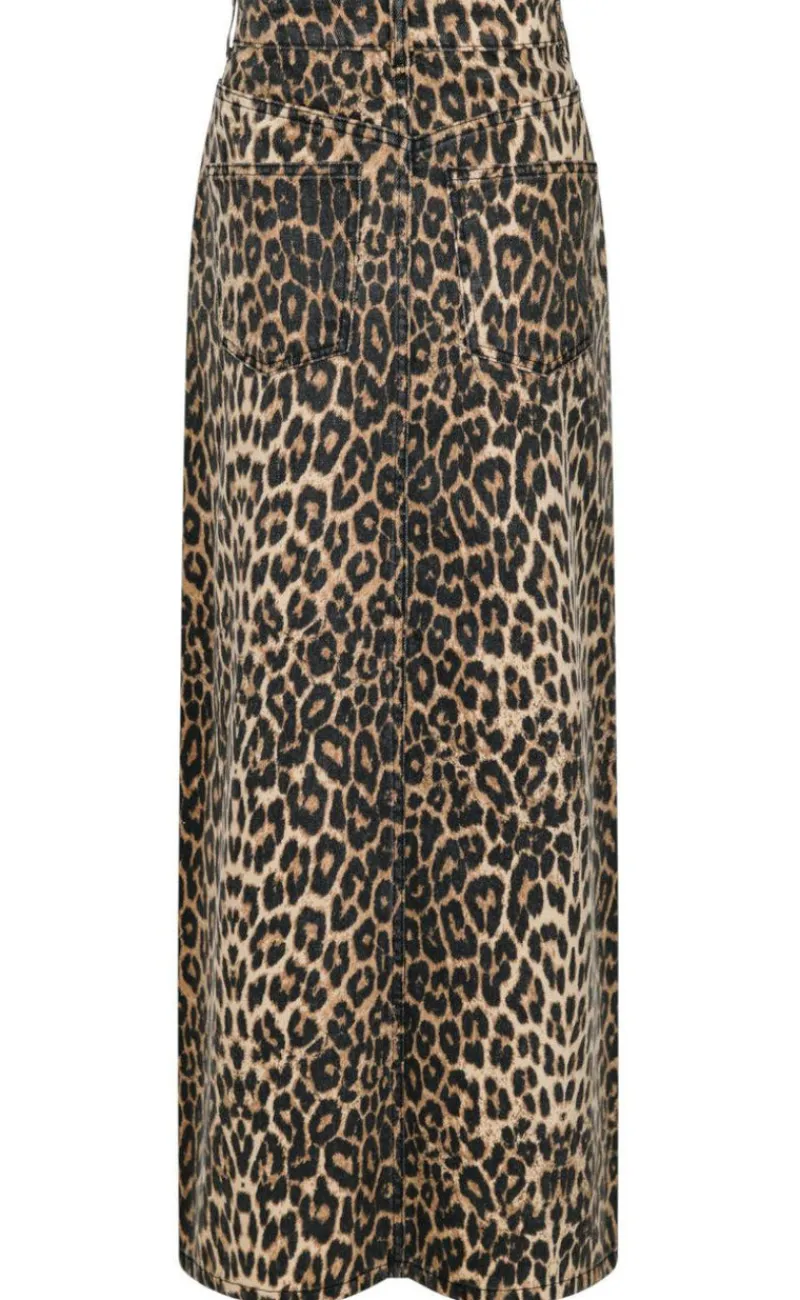 Lang denim nederdel fra Neo Noir i et flot leopardprint.