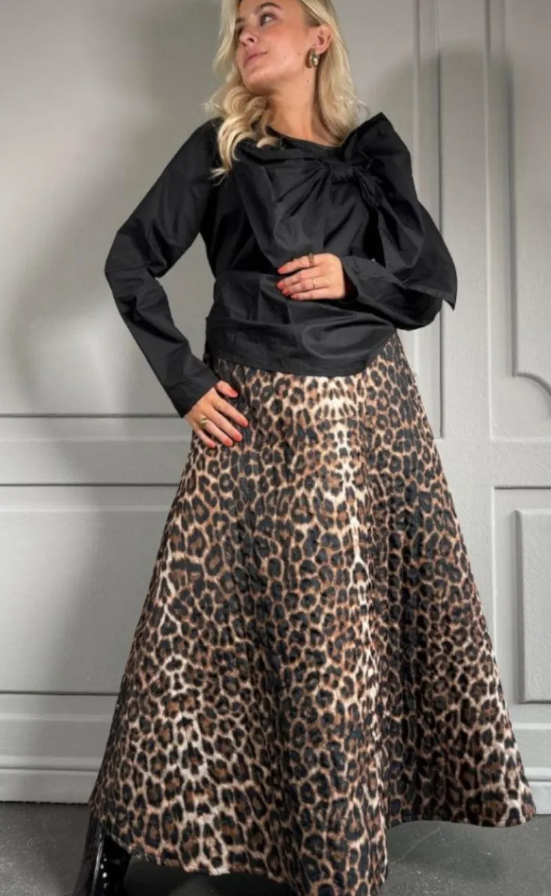 Den fineste nederdel vatteret i leopardprint fra Stories From The Atelier. Nederdelen lukkes bagpå med lynlås og har fast linning.