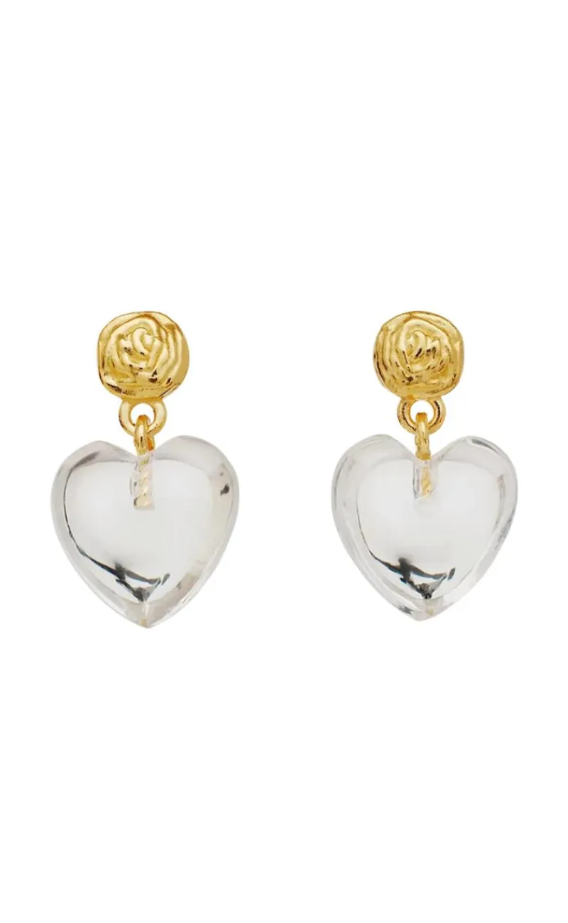 Søde øreringe i guld, med en hjerte bjergkrystal.