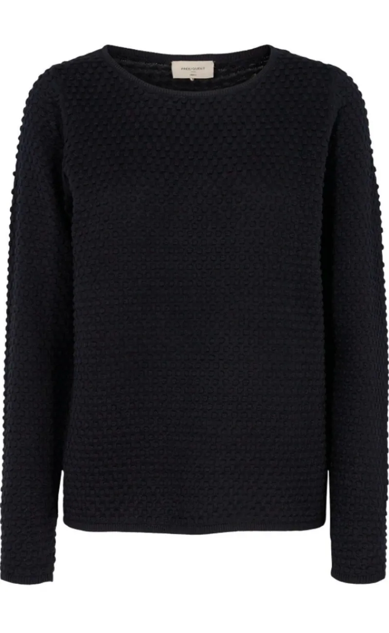 Dejlig strik fra Freequent i sort med lange ærmer og rund halsudskæring.