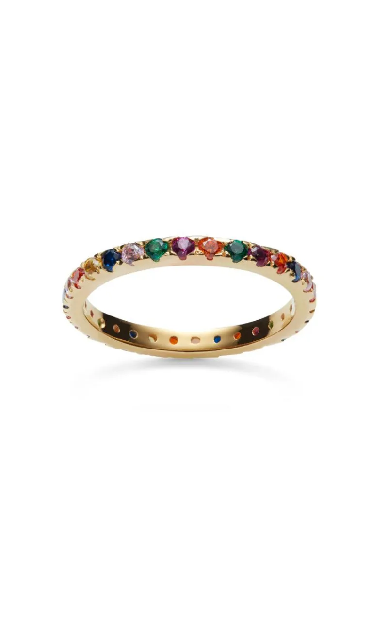 Tynd ring fra Maanesten i guld, med forskellige farvede sten.