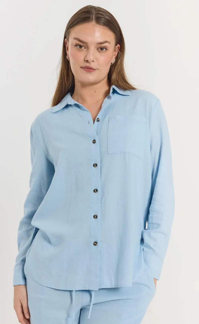 Denne skjorte har en klassisk skjorte pasform, og et hør kvalitets matriale.