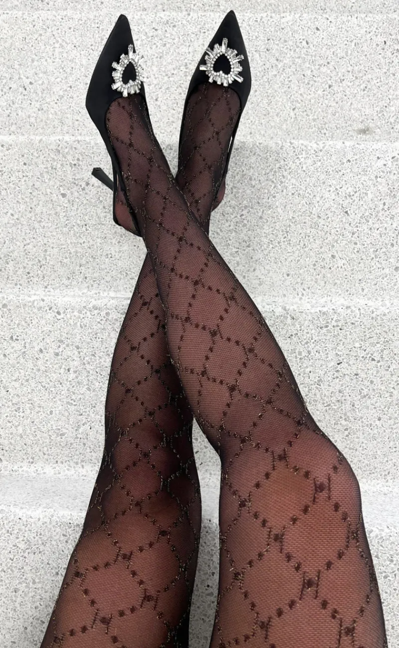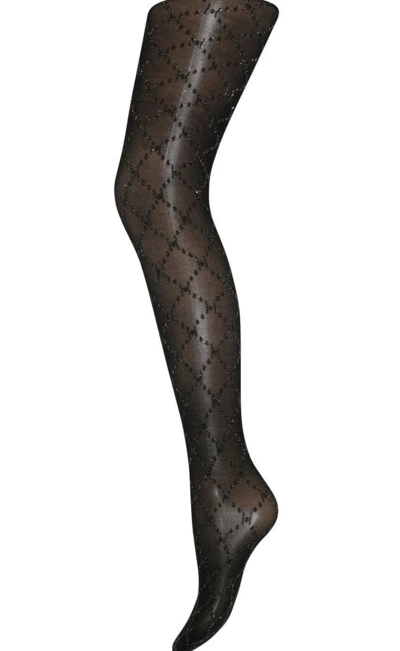 Lækre strømpebukser fra Hype The Detail i sort med guldglimmertråd i H-mønsteret.