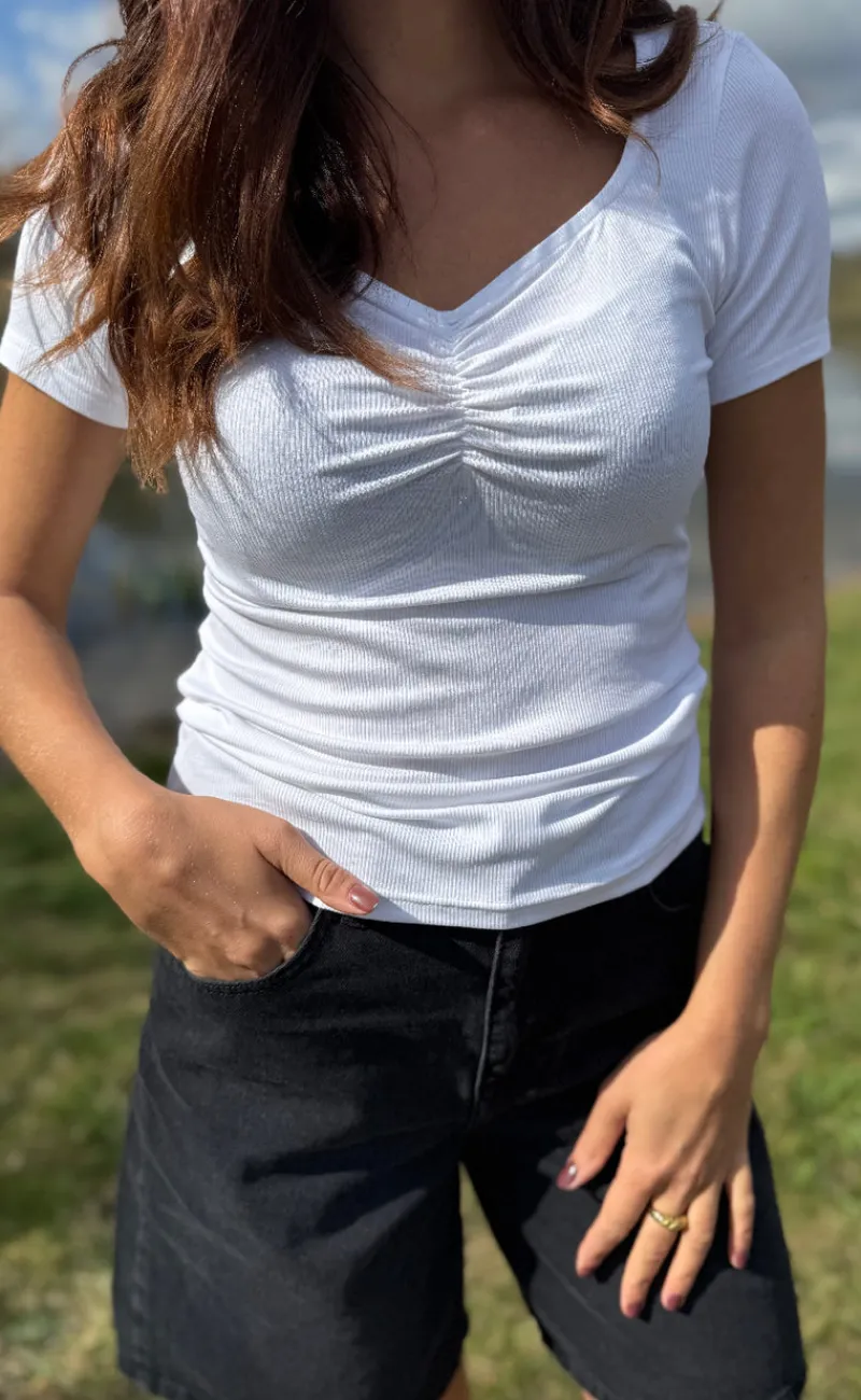 Sød t-shirt fra Luxzuz i hvid i en ribbet kvalitet.