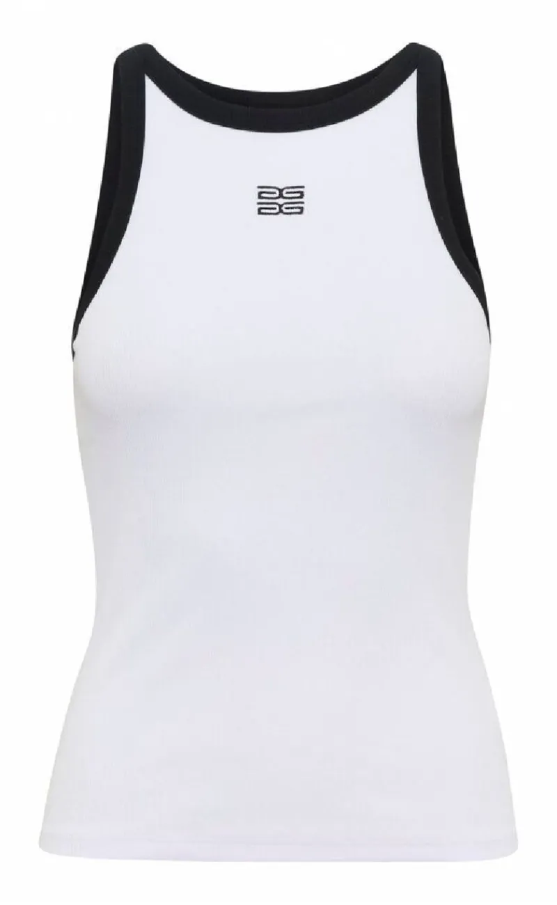 Dejlig og flot top fra Gestuz i hvid, med kontrast sygninger.