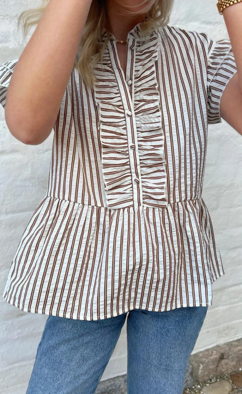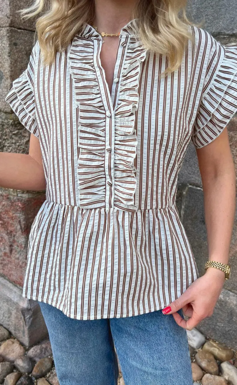 Nydelig top fra INA Copenhagen med hvide og brune striber.