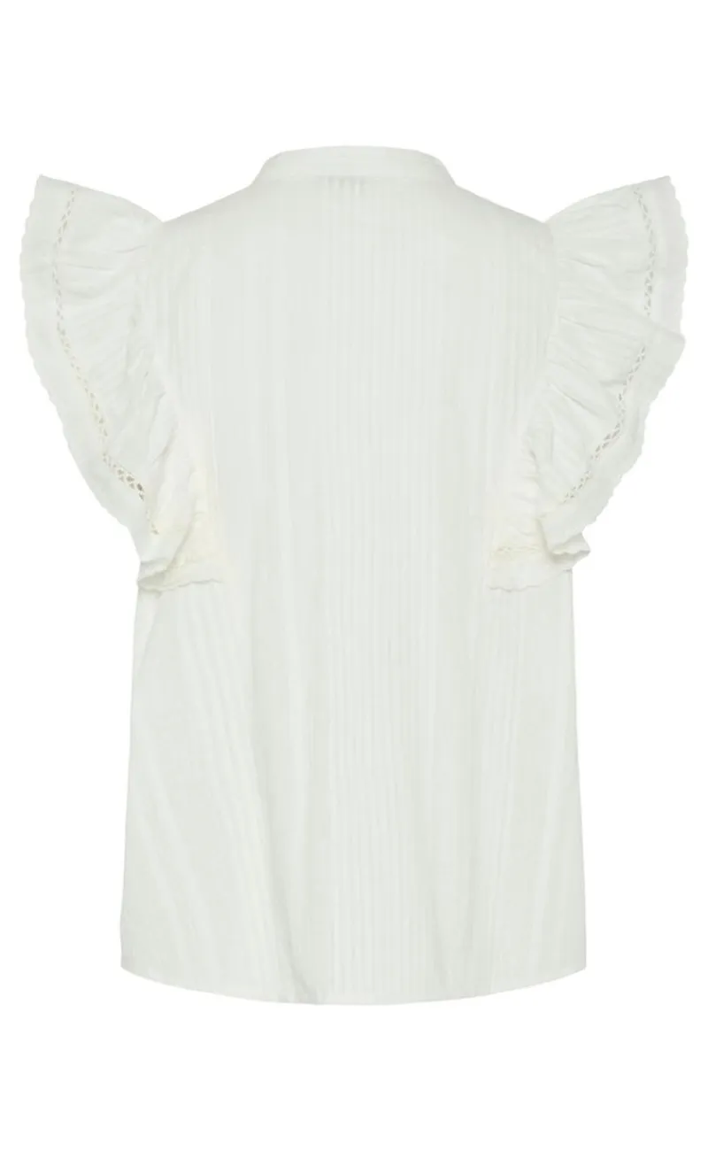 Denne top er hvid, og har søde flæse ærmer.