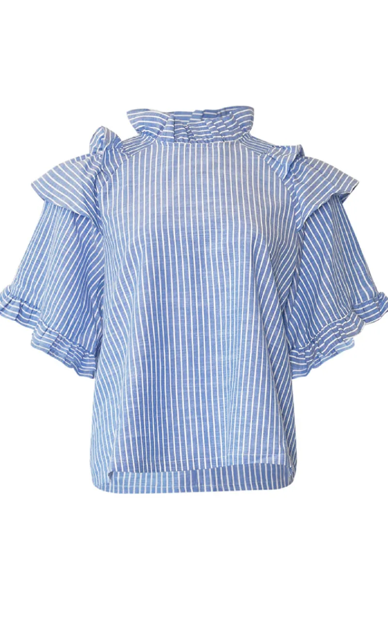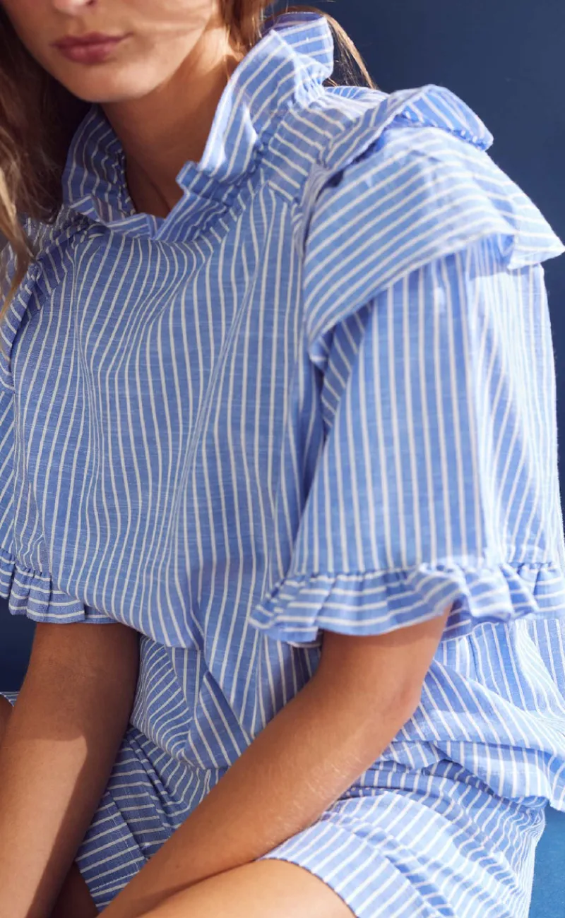Sød og feminin bluse fra Noella i et blå stribet print.