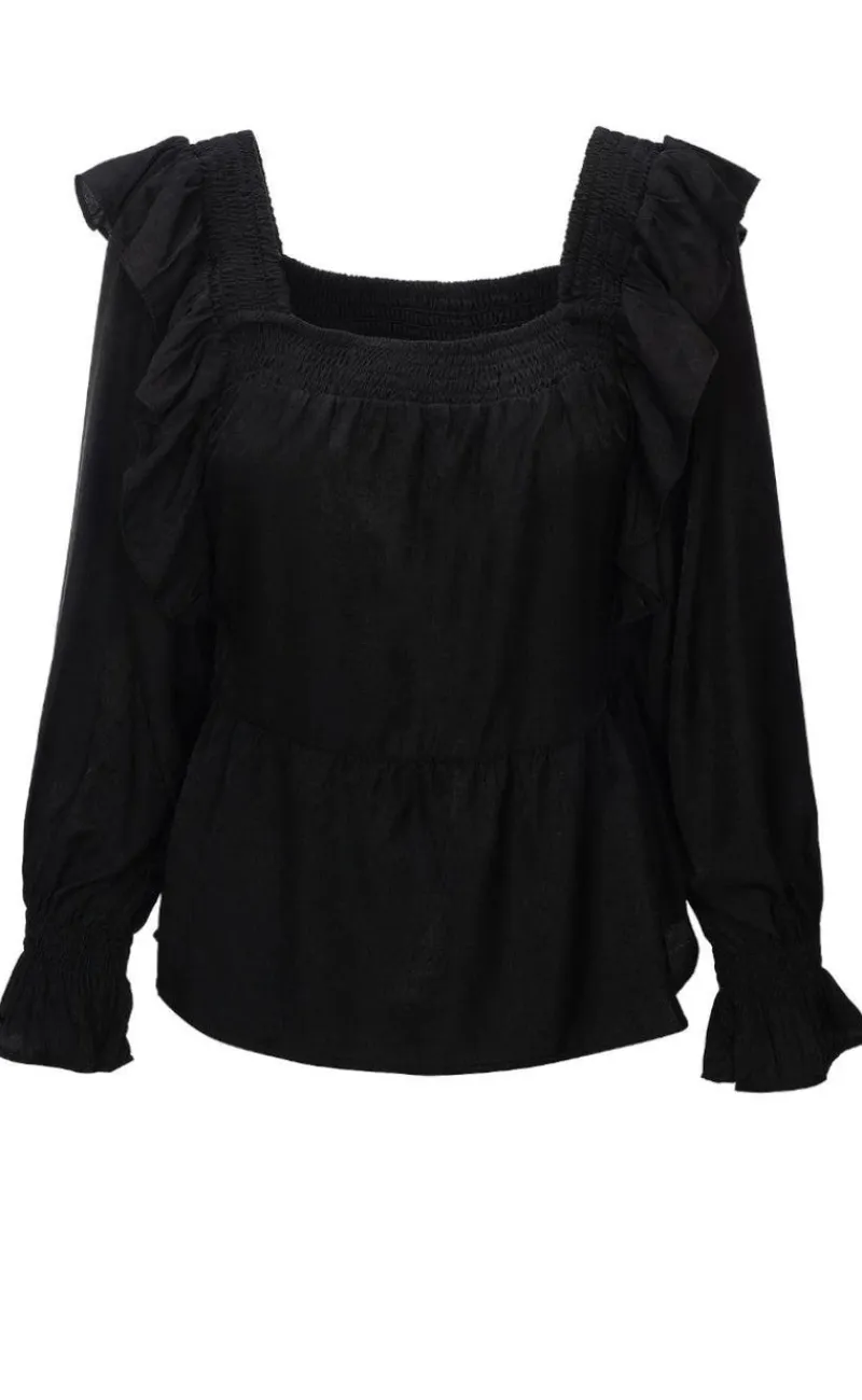 Feminin bluse fra Luxzuz i sort, med mange smukke og flotte detaljer.
