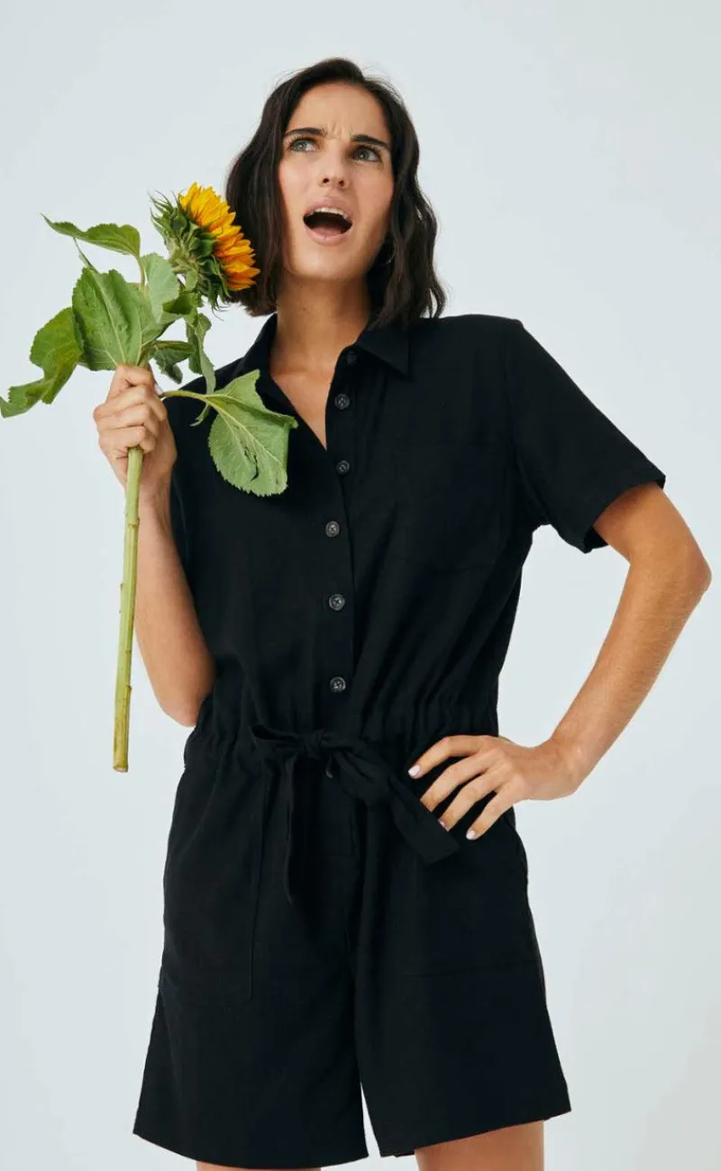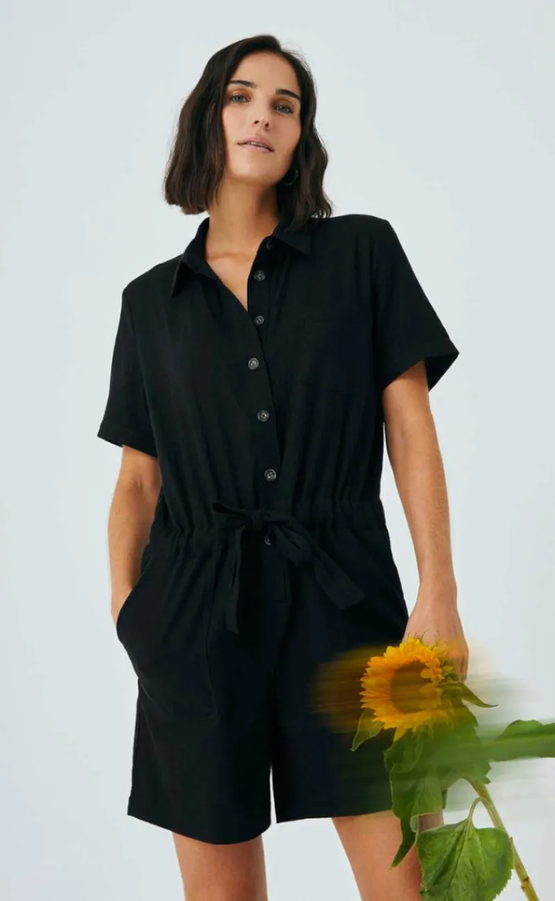 Dejlig hør buksedragt fra Freequent i sort.