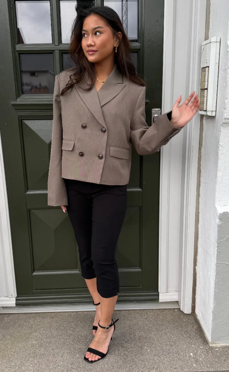 Fede bukser fra Freequent i sort, med en knæ længde.