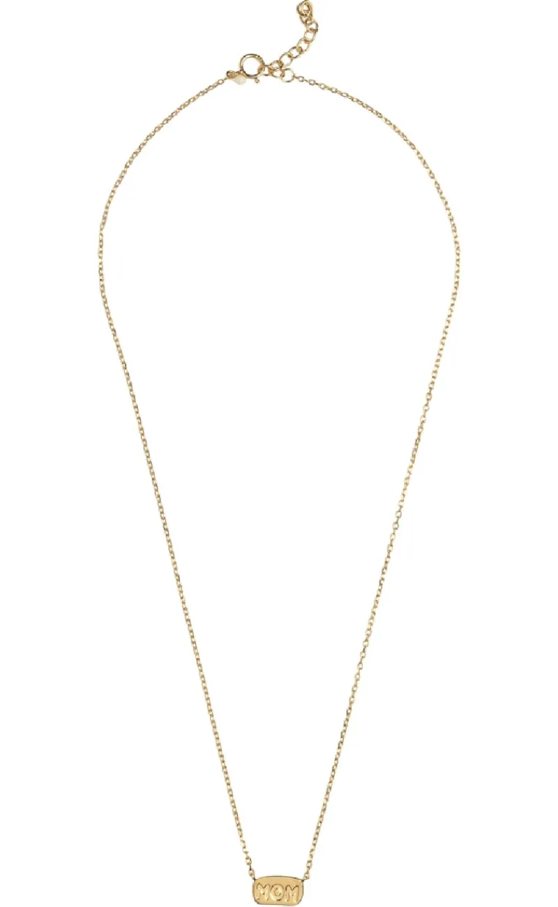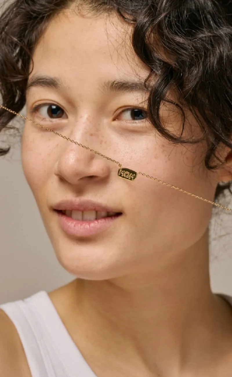 Sød halskøde fra ENAMEL Copenhagen i guld, med skriften “Mom” stående.