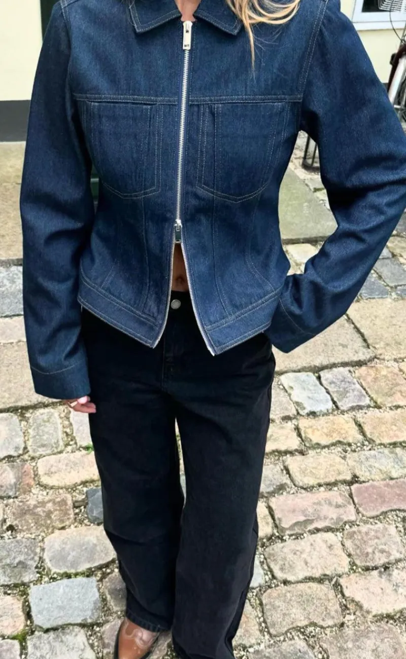 Flot jakke fra Global Funk i mørkeblå denim kvalitet.