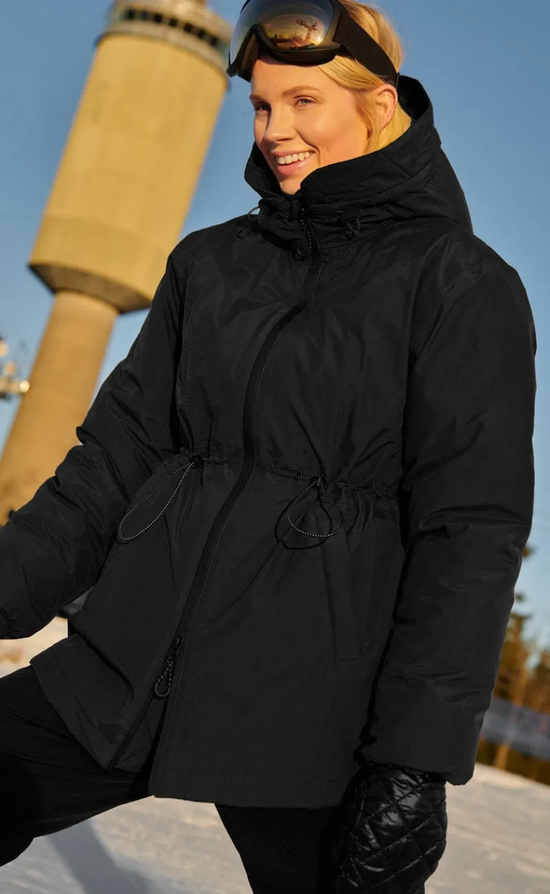 Jakken har snøre i taljen og er uundværlig til de kolde dage!