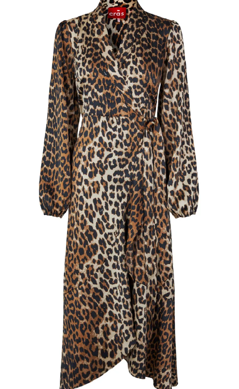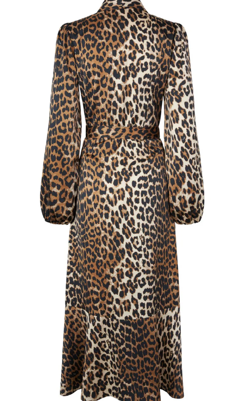 Flot, lang slå-om-kjole i et cool leopardprint med flæsedetaljer forneden.