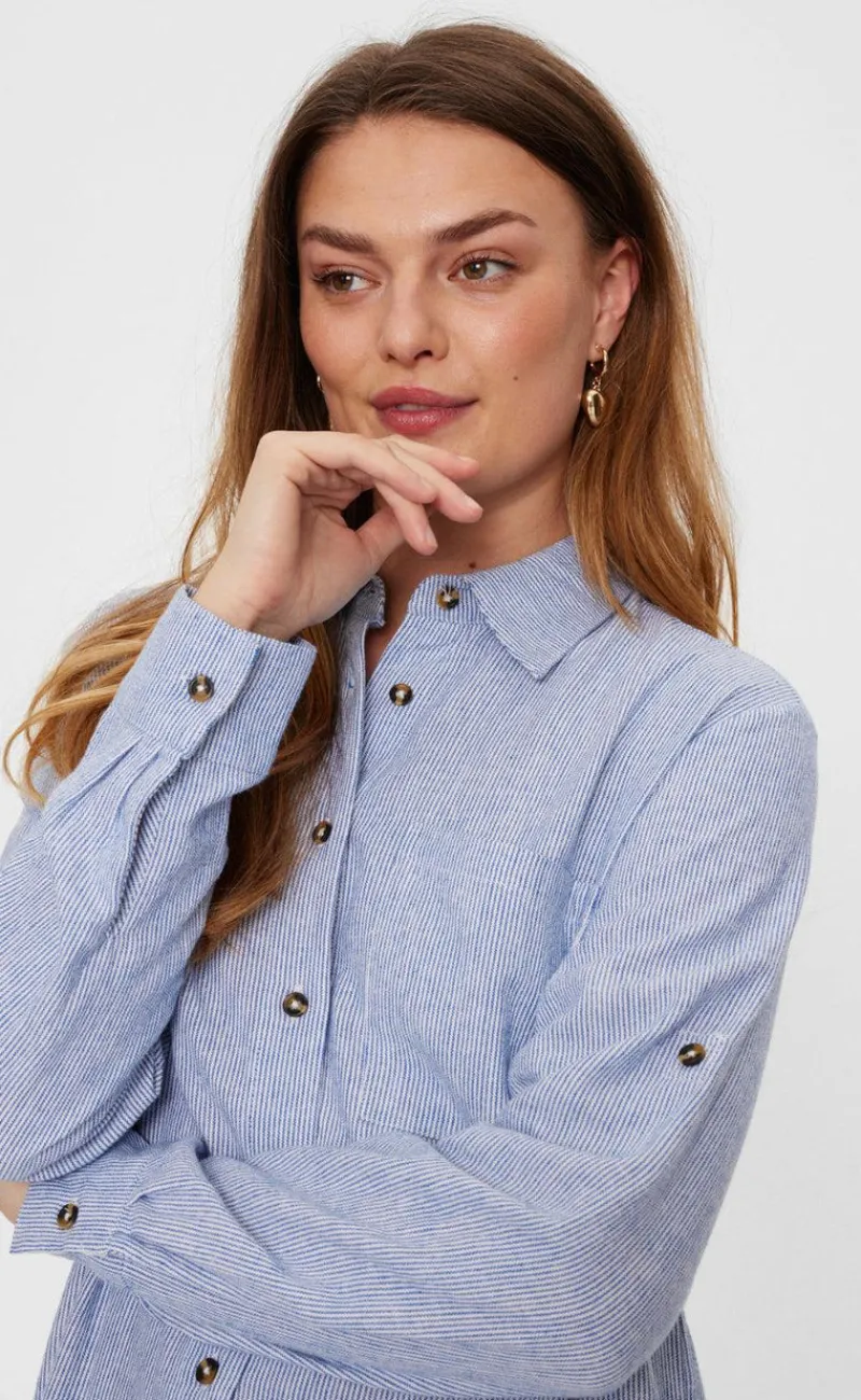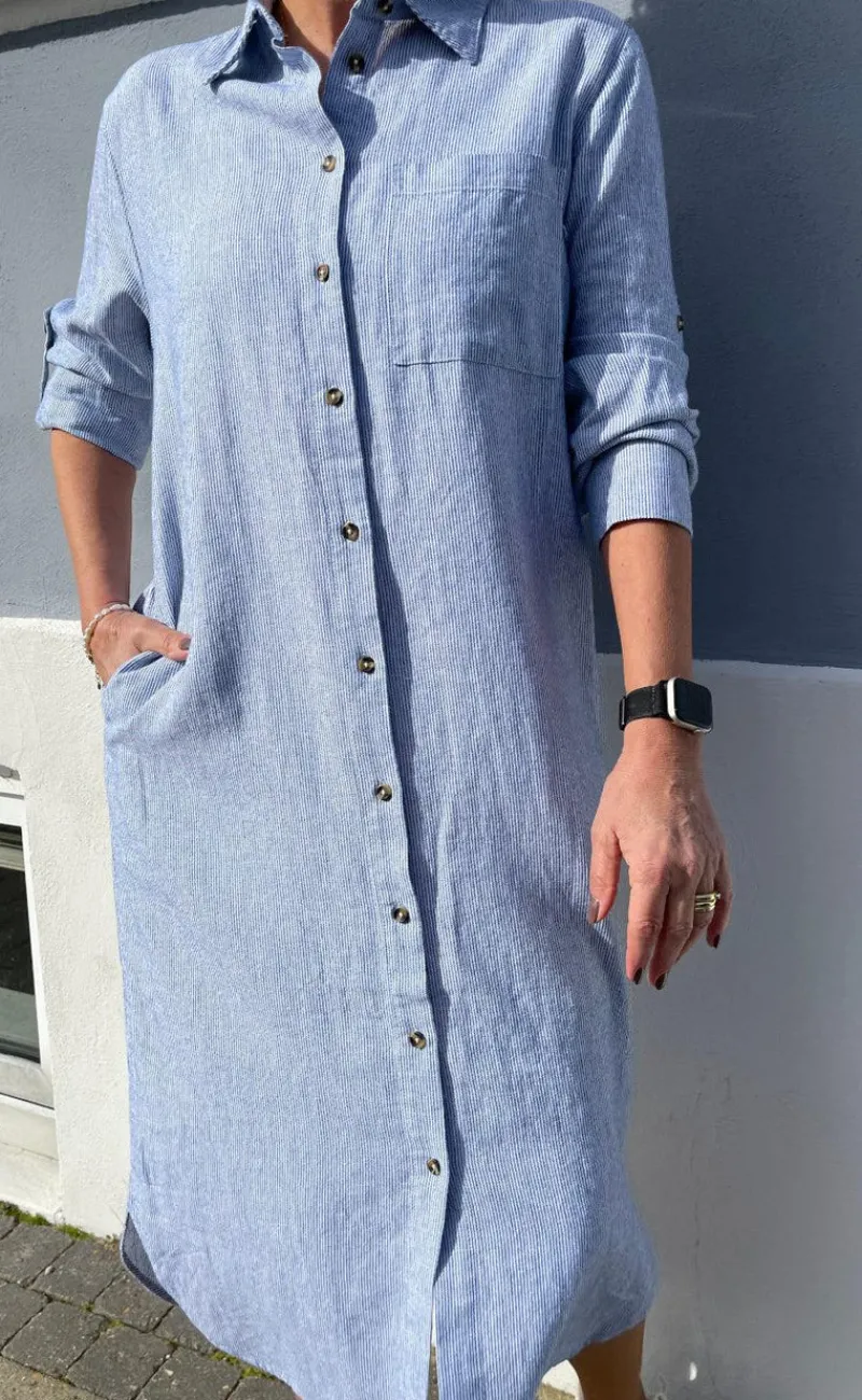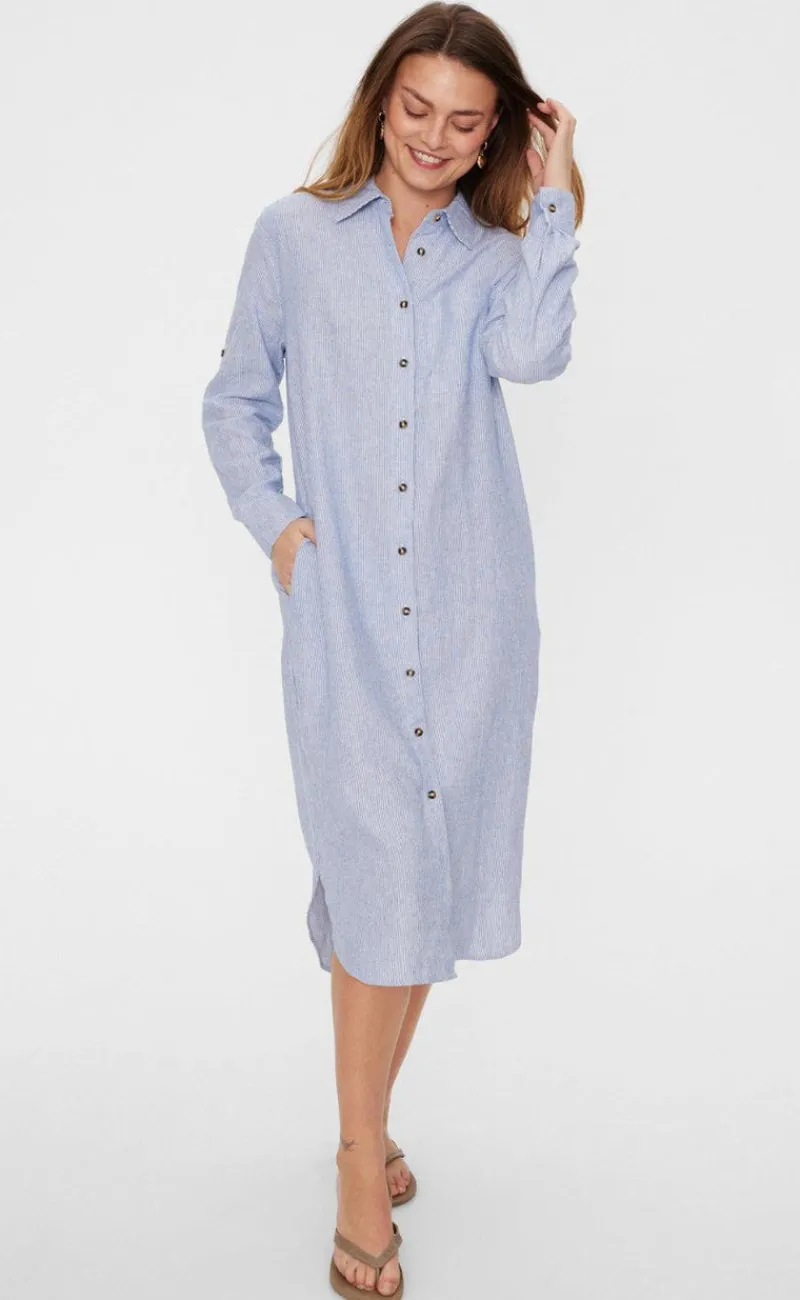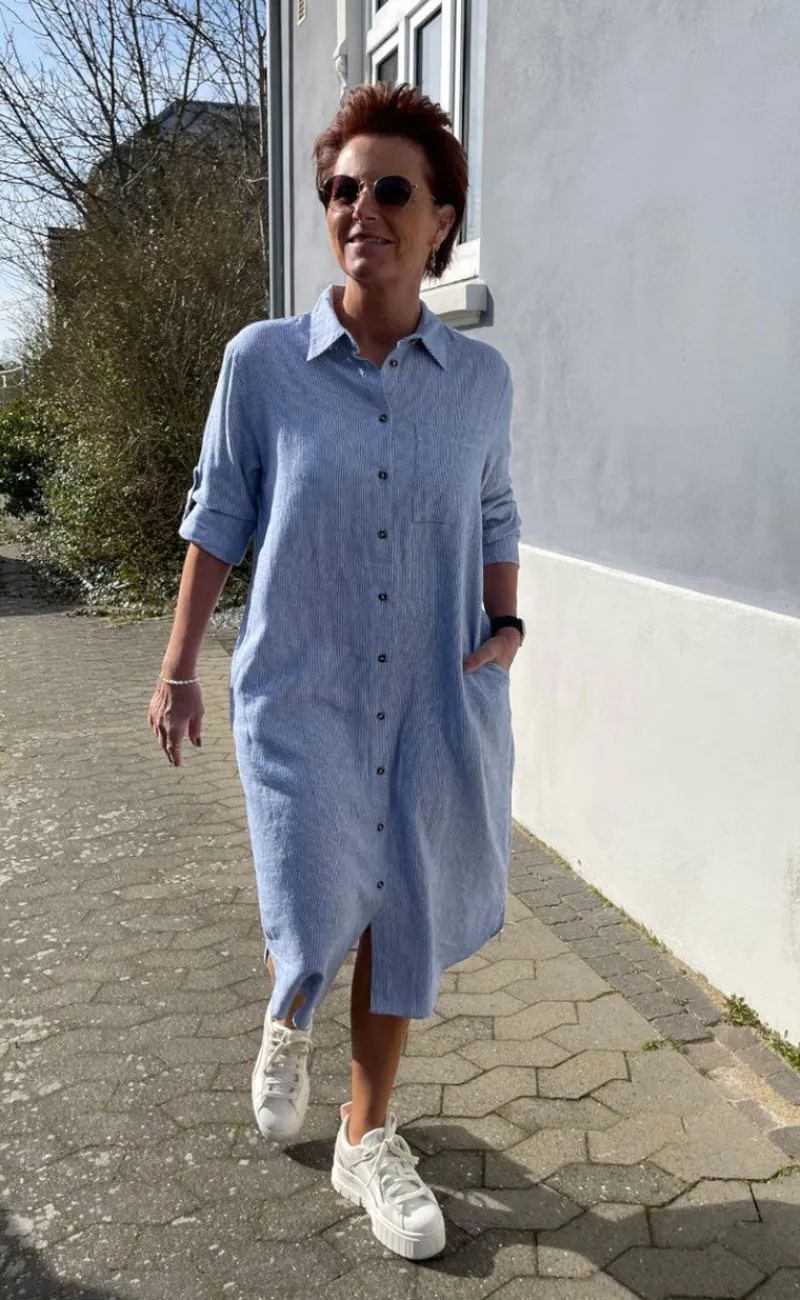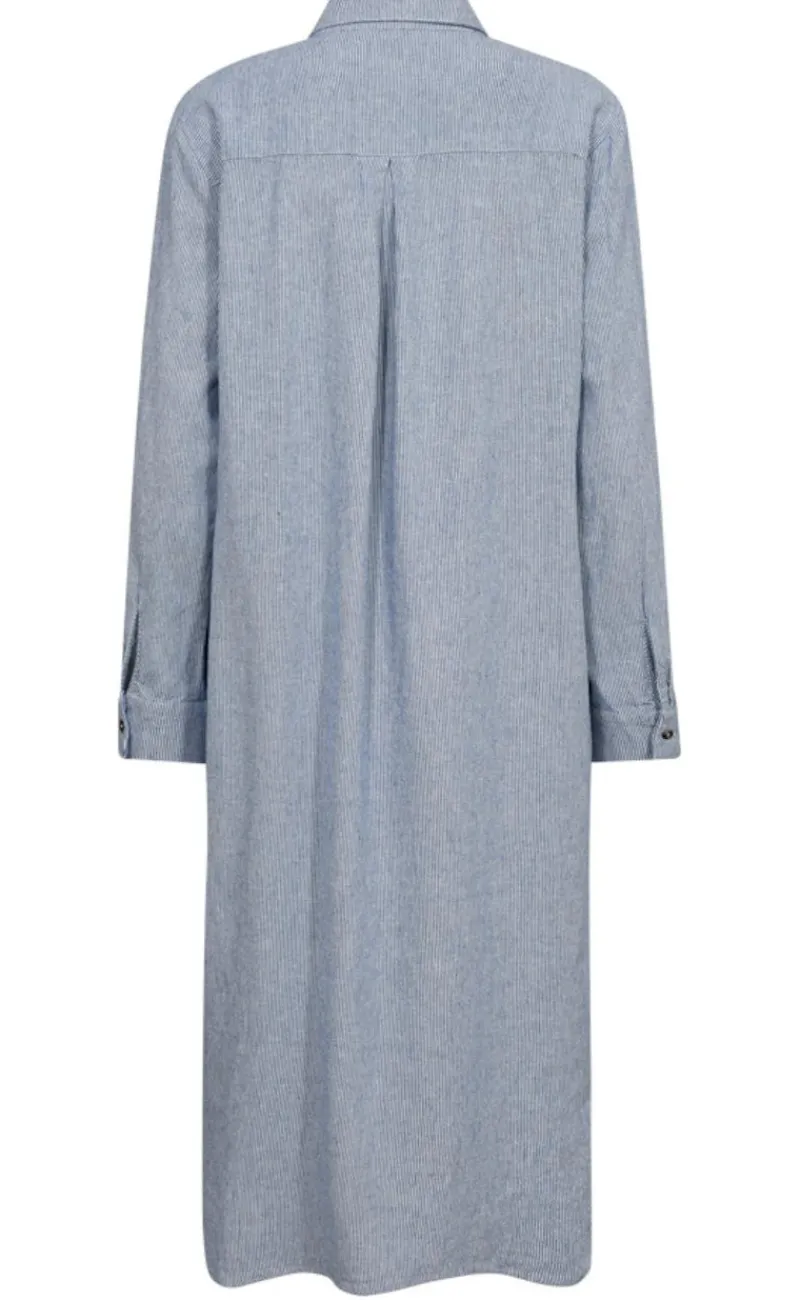 Smuk hør kjole fra Freequent i blå.