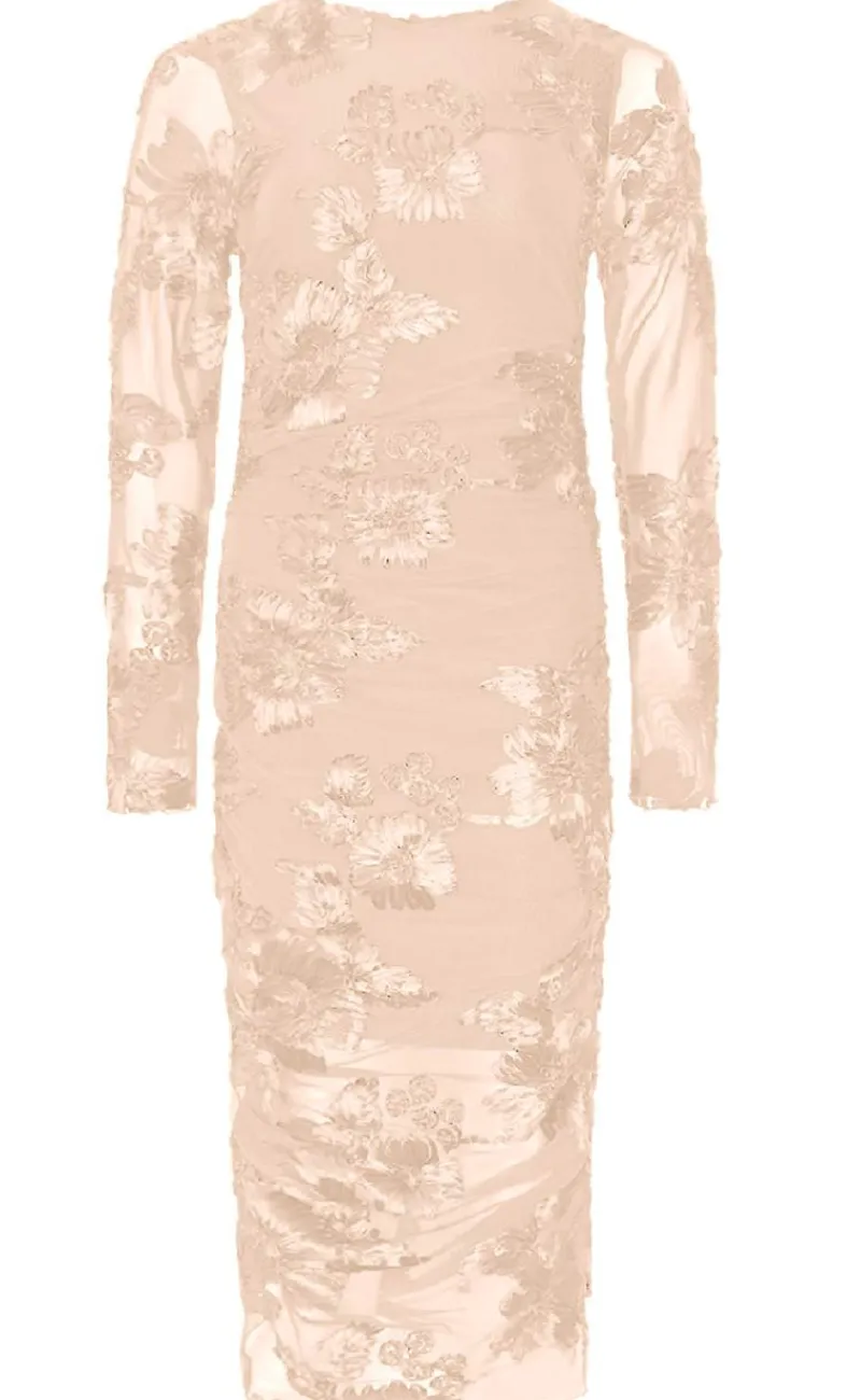Kjolen har lange ærmer og har et tætsiddende fit.