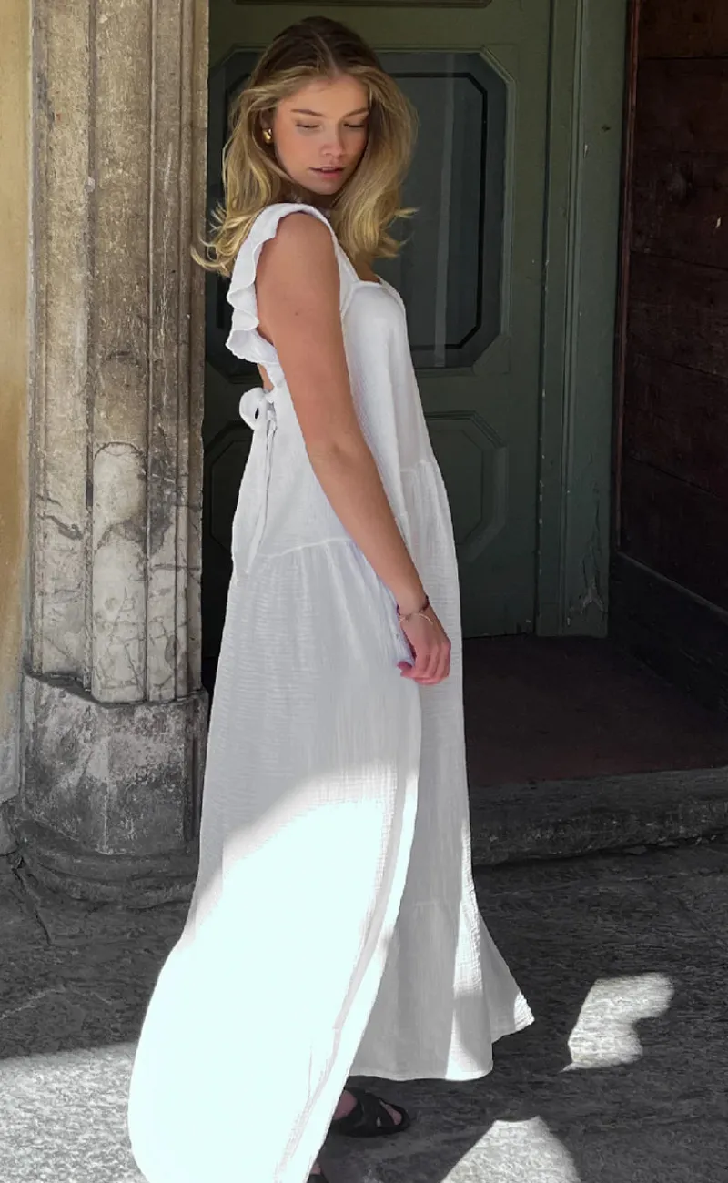 Yndig og let kjole fra Noella i hvid, med smukke detaljer.