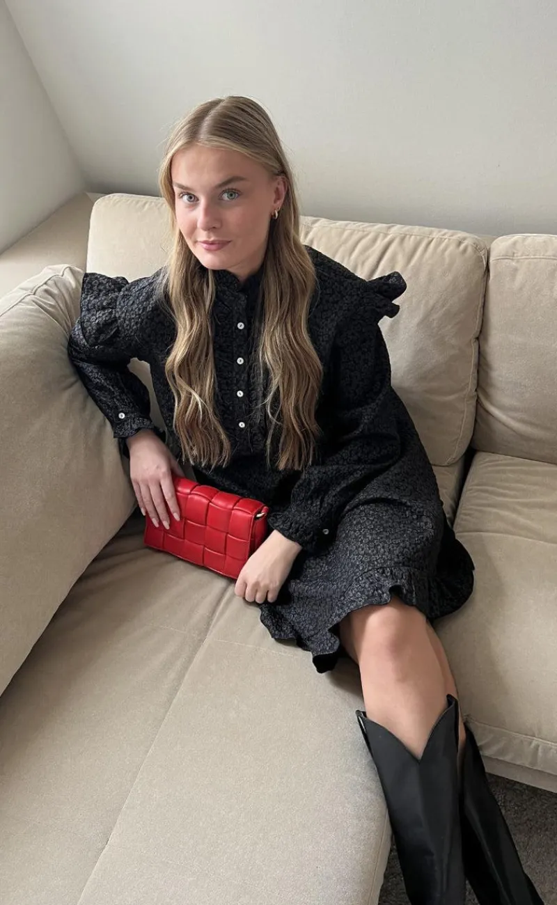 Feminin kjole fra Noella i sort med et diskret blomsterprint.
