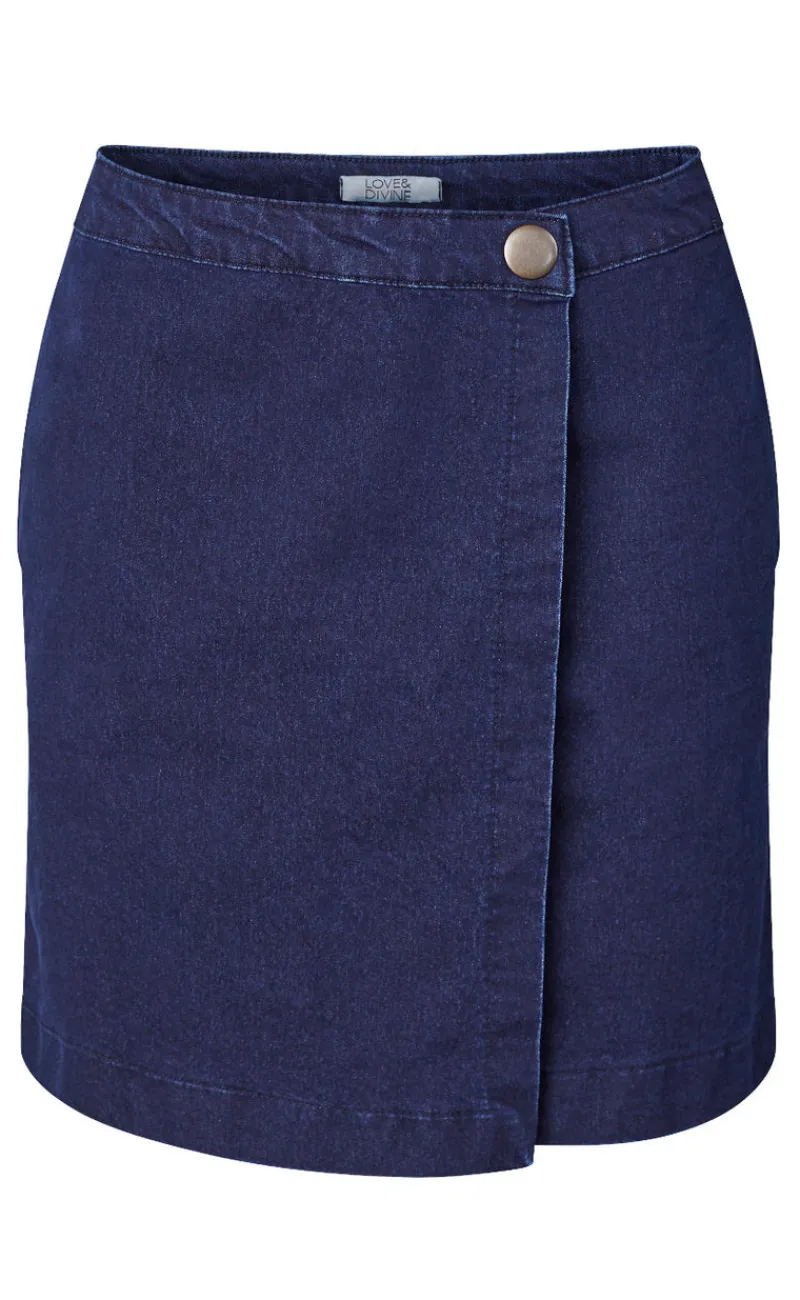 Fin nederdel fra Love & Divine i en mørkeblå denim farve.