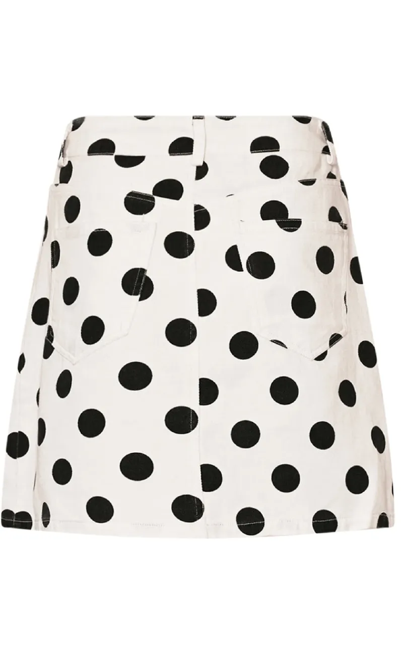 Kort nederdel fra Noella i hvid med sorte prikker.