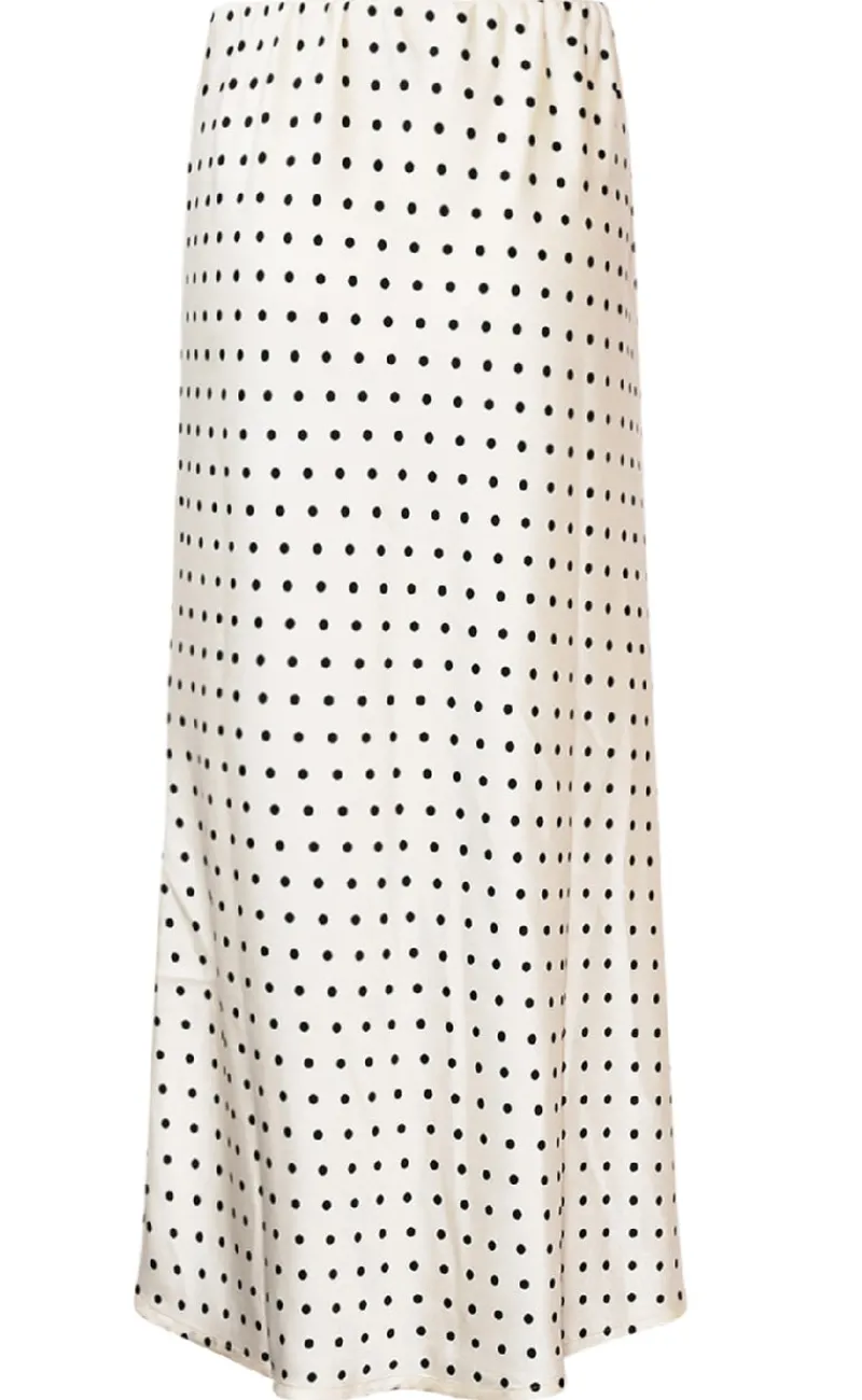 Satin maxi nederdel fra Noella i hvid med sorte prikker.